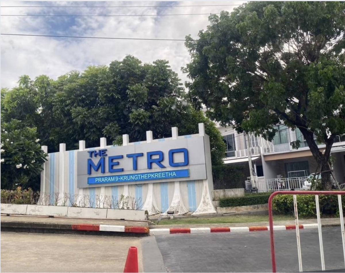 For sale: 2-storey townhouse, Metro Rama 9-Krungthep Kreetha project, area 19.7 square wah, 4 bedrooms, 2 bathrooms, 1 kitchen, 4 air conditioners. Interested, please contact 092-642-2937 and 081-698-7488.