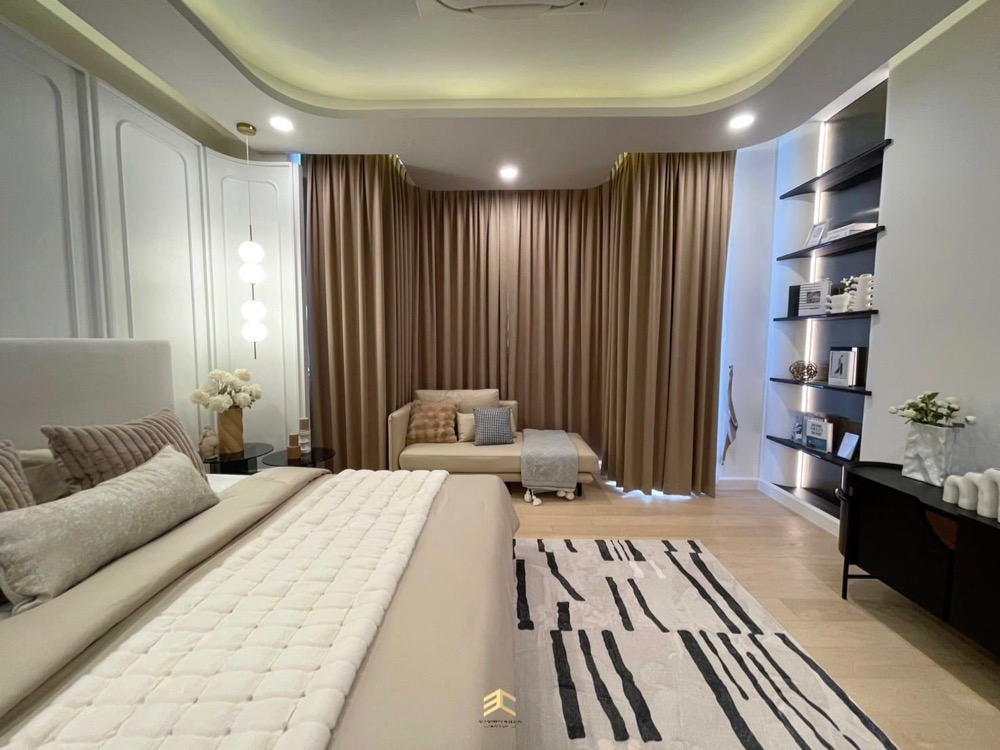 New Stock !! 3-story luxury house, Rama 3 location, Classic Contemporary style " Castello Rama 3 " Castello Rama 3 >> Luxury Class << Only 8 exclusive units ▪️ Land size 69.7 square meters ▪️ Usable area 445 square meters ▪️ 5 bedrooms, 6 bathrooms, 3 parking spaces, 1 maids room ▪️ With elevator ▪️ Parking for 3 cars 🔺️ Price 62,400,000 baht 🔺️ Decorated and ready to move in as shown in the picture. Fully furnished Nearby places - Kings College International School Bangkok- Shrewsbury International School Bangkok - Central Rama 3 - Terminal Rama 3 Location: Soi Charoenrat 7, Bang Kho Laem District Make an appointment to view the house and receive special privileges Kee Contact number line : https://line.me/ti/p/L3x6IPzE2y (Buy with 3C Property, guarantee that you will get the best price)