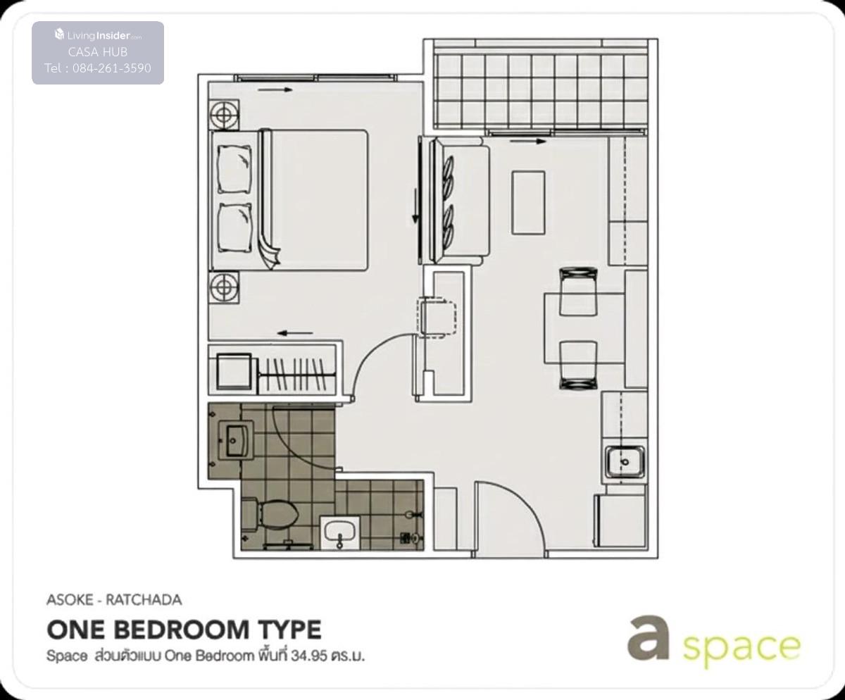 Condo for sale A-Space Asoke-Ratchada (Owner selling) 1 bedroom type | 35 sq.m. | 12A floor | FG building | Garden view ✅ Beautiful room, ready to move in The owner lives there, never rented out New tiles in the whole room + new paint Garden view, shady atmosphere 1 car parking space ✨ Good location, convenient transportation Near MRT Rama 9 and MRT Cultural Center Connecting Asoke-Ratchada, near Central Rama 9 Near expressways and lifestyle sources 💰 Special price: 2.19 million baht (ready to transfer) 📌 Transfer day expenses are half each 📞 Interested, please contact CASA HUB Property 📲 Call: Contact number 💬 Line: @008niscb (with @)