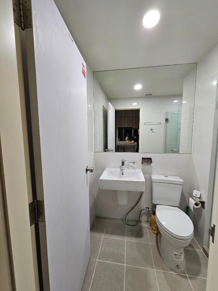 Condo for sale: The Origin Ramintra 83 Station, Building G, 8th floor Owner sells it himself... Connected to Synphaet BTS Station, only 70 meters, 2 minutes to Kanchana Ring Road, 3 minutes to Fashion Island View room on the new project side, Plug & Play , central area, 48 baht per square meter, complete with Half Olympic swimming pool, fitness, sauna, co-working space, game room, movie watching, book room Room size, area 22.78 sq m with stiebel eltron water heater, glass shower screen, sink, toilet Sharp 2-door refrigerator, built-in Toshiba 8 kg washing machine and dryer , electric stove, Hafele hood Sink + faucet, Daikin air conditioner 12,000 BTU , 3-door wardrobe + mirror , shoe cabinet The room has been changed to 12W LED white lights, laminate floors. Bedroom/kitchen partition divides the proportions Glass with 3M 60% Smart Home film for turning on/off air-conditioning and lights Can be done via mobile phone Digital door lock There is a tenant. Can negotiate with tenants