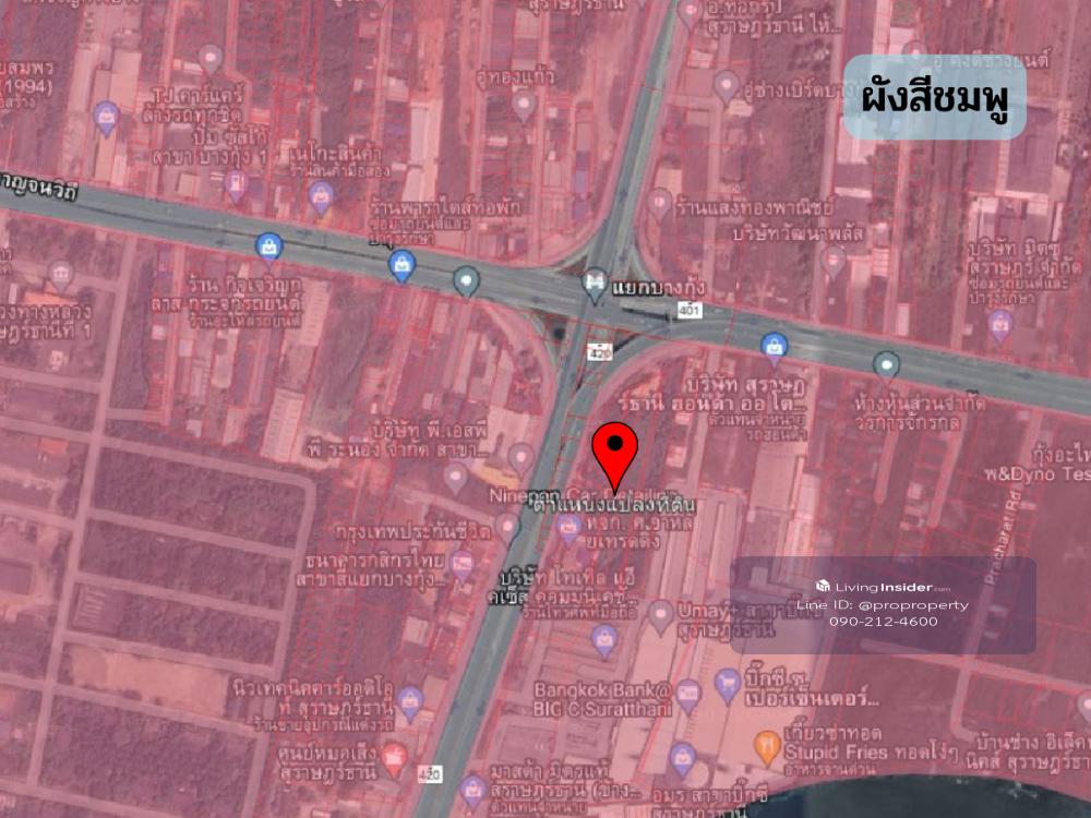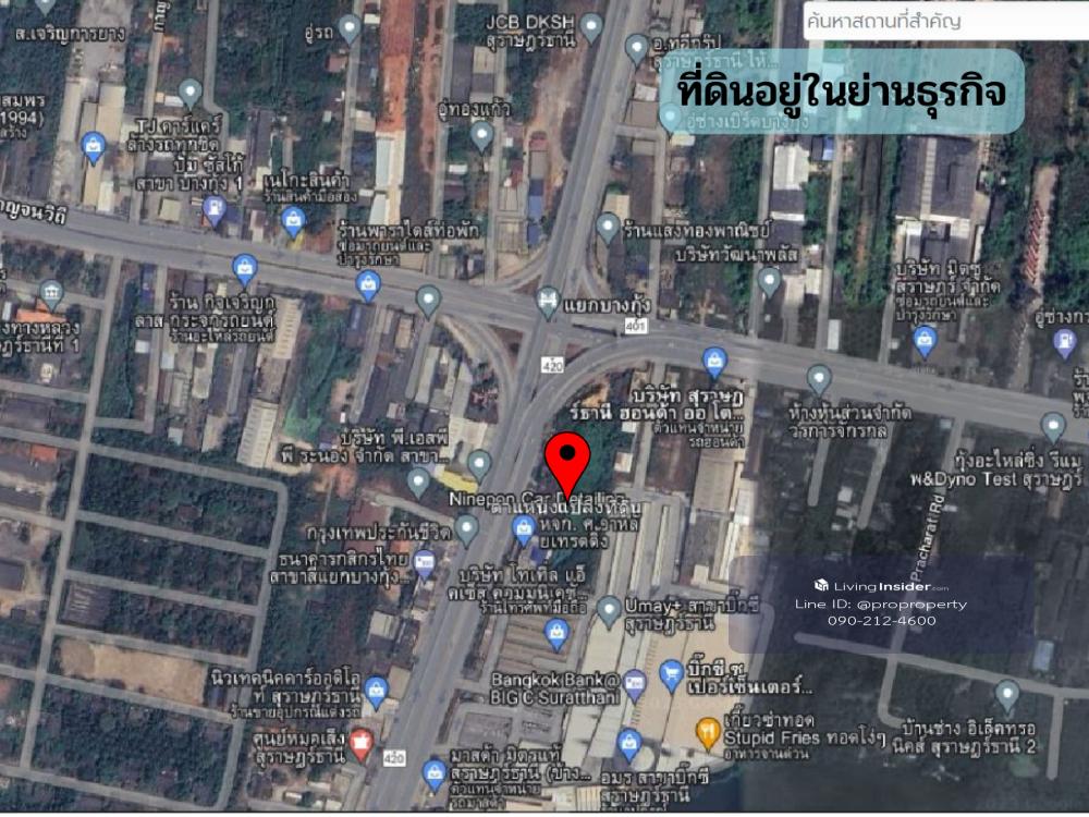 Land for sale in Surat Thani, Mueang District, next to the main road, next to Big C, 5 rai. Land is in a good location next to Big C Supercenter Surat Thani, on the main road, Kanchanavithi Road and Surat-Nakhon Si Thammarat Road. Price 56,000,000 baht Land details: - Land size 5 rai and 22 sq wa. - The land is a Red Garuda title deed (NS.4), completed survey and ready for transfer. - Pink land layout, community area, suitable for both residential projects. Commercial sources in the business district - Land size is approximately 42 meters wide next to the road - 210 meters deep. - Land next to the main road, Bang Kung intersection, Kanchanavithi Road and Surat-Nakhon Si Thammarat Road. Map: https://goo.gl/maps/miQdY3dyCtWiayEbA Nearby places : - Big C Super Center Surat Thani 350 meters, 1 minute - Lamphu Restaurant 3 6.2 km. 8 minutes - Tapee Seafood Restaurant 6.0 km. 8 minutes. - City Pillar Shrine, Surat Thani 8.0 km. 14 minutes. - Orchid Riverview Hotel 8.6 km. 17 minutes - Surat Thani Provincial Sports Center 4.4 km. 9 minutes. - Vibhavadi Rangsit Camp Hospital 4.0 km. 5 minutes. - Thaksin Hospital 6.4 km. 10 minutes. - Surat Thani Floating Market 8 km. 16 minutes. - Wat Phatthanaram (Wat Mai) 7.1 km. 13 minutes. - Wat Tha Phet 3.7 km. 5 minutes. - Wat Pho Nimit (Wat Bang Kung) 3.9 km. 6 minutes. - Kasikorn Bank Bang Kung Intersection Branch 1.9 km. 3 minutes - Provincial Electricity Authority, Surat Thani Province, 6.2 km., 14 minutes. - Susco gas station, Bang Kung branch, 2.8 km., 4 minutes. - PT Gas Station, Bang Kung Branch, 1.6 km., 2 minutes.