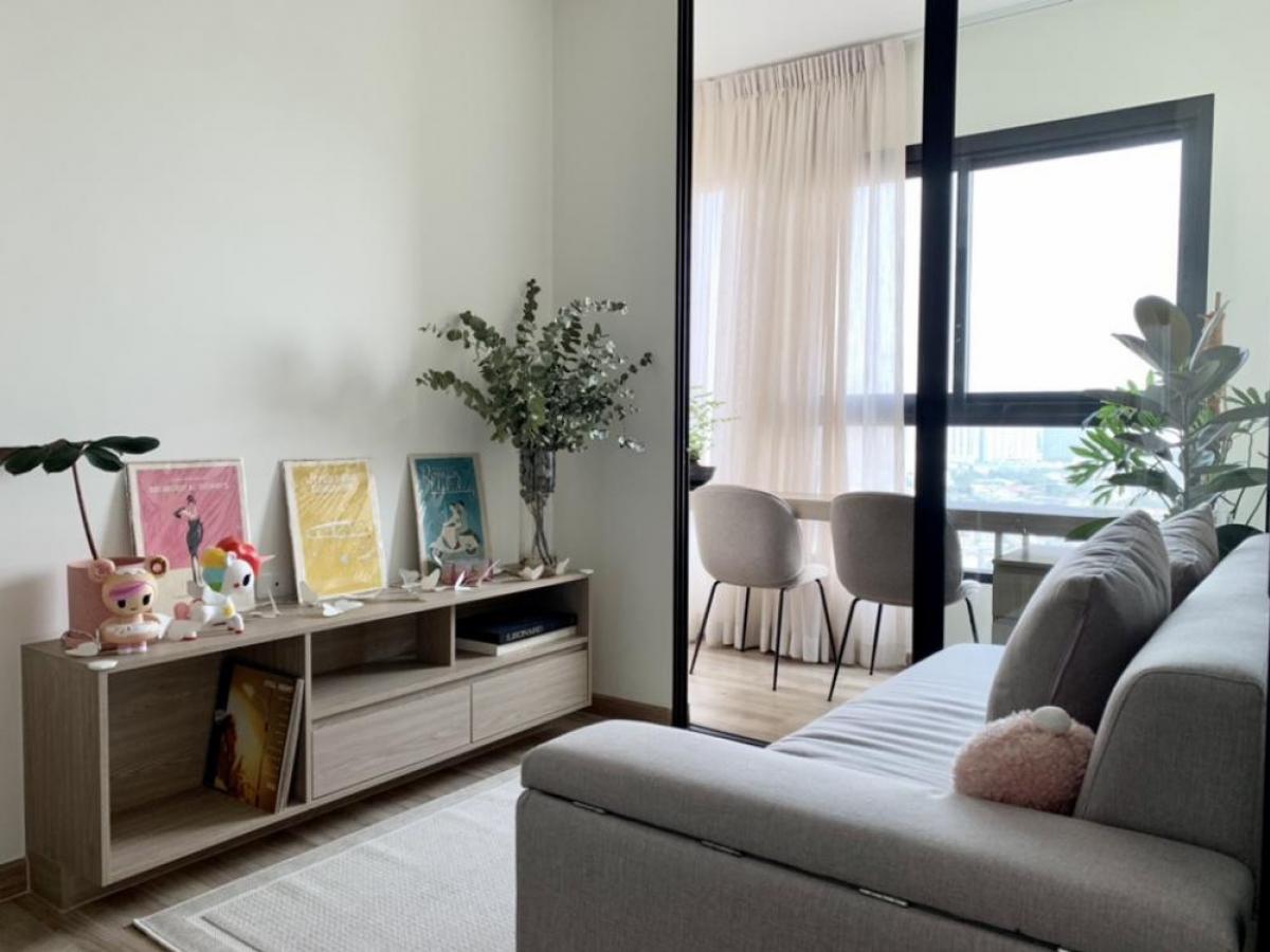 Condo for sale, Niche Mono Charoen Nakhon (view of Chao Phraya River, Asiatique and IconSiam) Fully Furnished!!! by SB Design Owner sells himself, negotiable Interested, please contact Contact number 🌟High floor, 27th floor, view of the curve of the Chao Phraya River, Asiatique and IconSiam sides 🌟Corner room, next to the fire escape, the room wall is not attached to any other room, high privacy, definitely free from noise from the next room 🌟Single Corridor in front of the room, no room on the opposite side High privacy 🌟Total area of ​​34.9 sq.m. 1 bedplus room, divided by sliding door, separating the bedroom, living room, kitchen and work room 🌟2.70 meter high ceiling 🌟Furniture with SB Design By Sena kitchen set 🌟MEX electric stove and hood, 1 set, ready to install 🌟Daikin air conditioner 12,000BTU and 15,000BTU or equivalent, 2 units ready to install 🌟Digital Door Lock 1 set 🌟Free!! 6-foot mattress with pillow set and duvet, refrigerator, air purifier and others 🌟Ready to support the Purple Line, Purple Station (Tao Poon - Rat Burana), Dao Khanong Station