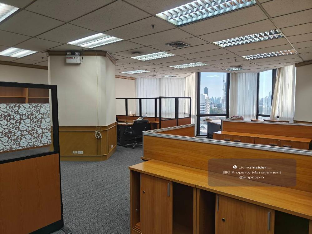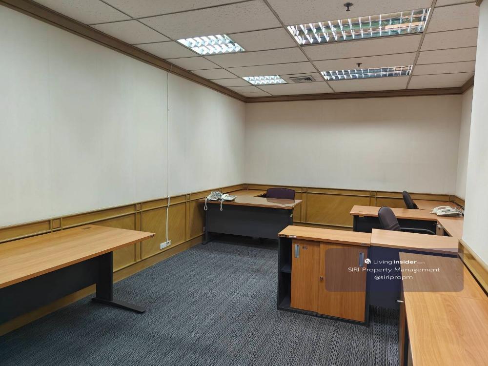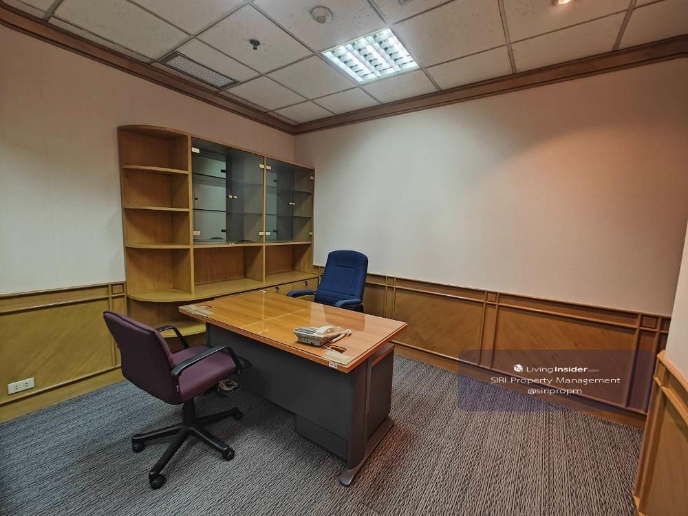 Area 367.40 sq m. 8th floor Price 550 baht per sq m. Not including common fees There are 4 regular parking spaces. Common fee 32 baht/sq m./month Water cost 19.19 baht/unit Electricity cost according to electricity rate cooling tower air conditioning system 07.00-18.00 hrs. 3 year contract, 3 months warranty, 1 month advance There is room partitioning. With office furniture Ready to move in