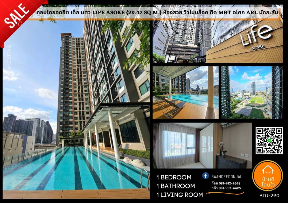 Special price condo Life Asoke (29.47 sq m.) next to MRT Phetchaburi APRL Makkasan +++ Special price 4.29 million baht +++ (from 4.85 million baht) Room details: - Size 29.47 sq m. - 1 bedroom, 1 bathroom, 1 kitchen, separate zones. The smell doesnt disturb - 17th floor, unblocked view - Digital Door Lock - Electric living sofa set, wardrobe, storage cabinet, dressing table Built-in kitchen set - Electrical appliances (TV, 2 air conditioners, refrigerator, water heater, electric stove, range hood, washing machine) - Eastern balcony, garden view, no buildings blocking it - Common fee 37 baht/sq m/month +-+-+-+-+-+-+-+-+-+-+ If interested, contact / Contact via LineID: @baandeedonjai or click here: https://lin. ee/qj6jzs0 Phatthaphon (Kla) Tel: Contact number You can follow our work through the channel Facebook Page : baandeedonjai - https://shorturl.asia/irxZk Youtube : baandeedonjai - https://shorturl.asia/OVpZjTiktok : @baandeedonjai - https://shorturl.asia/f1DVQ Service for depositing, selling/renting all types of real estate. By a professional team Analyze prices to create sales. intensive marketing Direct to the target group Free all marketing costs #Good house #Service with heart is our job. #Accepting consignment for sale of houses, land, condos in Bangkok #second-hand houses #cheap second-hand houses #House for sale #House consignment #Secondhand condo #Cheap house #Cheap condo #LifeAsoke #LifeAsoke #Huai Khwang #Sutthisan #Ratchadaphisek #Esplanade #Central Rama 9 #Rama 9 #SWU Demonstration #SWU Prasarnmit #Din Daeng #Bang Kapi #Makkasan #MRT Phetchaburi #Saint Dominic #New Phetchaburi #RCA #Khlongtan