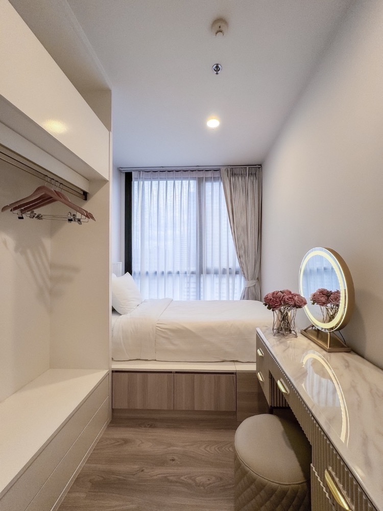 Oka Haus ***New room, never rented out*** High rise condo, 47 floors, Urban resort Condominium style, uses Smart living innovation, convenient with many amenities, 40 meter long swimming pool, surrounded by nature. 180 degree city view, Leisure Pool, hydrotherapy swimming pool, sauna room, Fitness, Laundry room on the 8th floor Sky Lounge, Outdoor Theater and large gardens On the 47th floor, Theater room, Co-Working space, Co-Kitchen, playground Project location next to Rama 4 Road. Near Maleenont Building 1.3 km from BTS Thonglor. The project has Shuttle service, delivery service at BTS Thonglor The room is on the 17th floor, area 41.20 sq m, is a corner room, next to another room on one side -2 bedrooms (1Queen size bed+1Single bed) -1 living room + sofa + balcony -built in kitchen -1 bathroom (rain shower, electric toilet bowl) - Built in wardrobes and furniture made to order according to the size of the space - Electrical appliances: 1 TV, refrigerator, electric stove, microwave, water heater, washing machine - 3 air conditioners - Monthly rent 33,000 (1 year contract) ***New room, never rented out*** https://maps.app.goo.gl/Vjzw1quuPfLpoUL57?g_st=ic