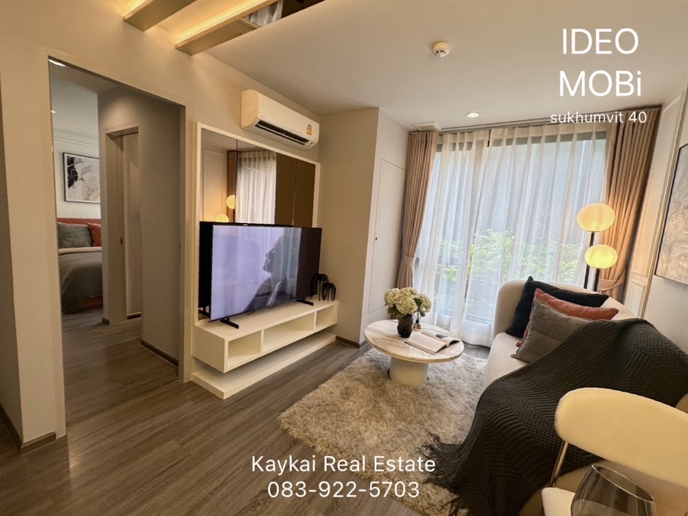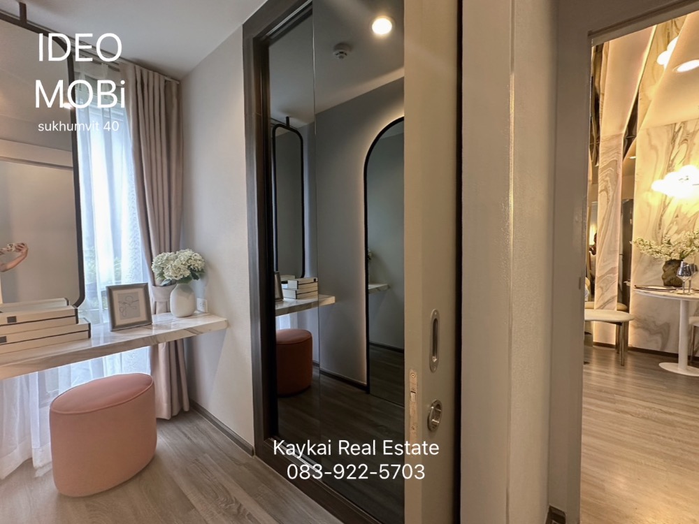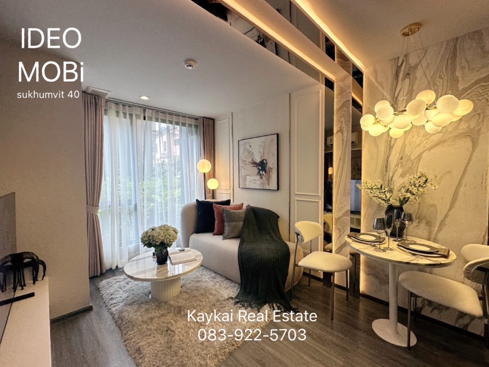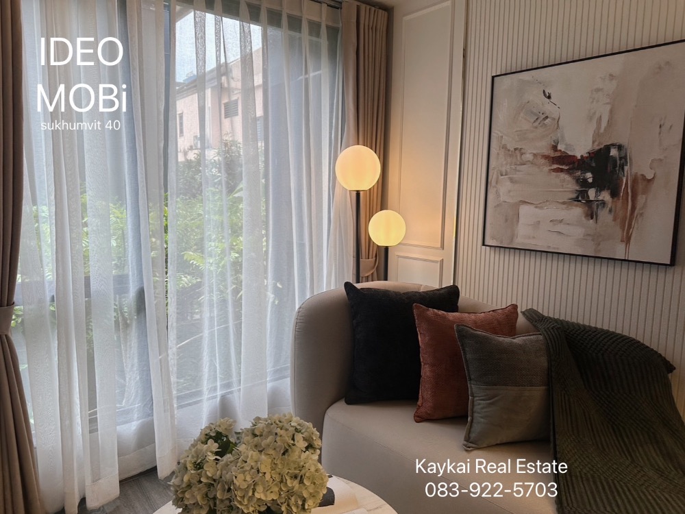 Condo for sale Ideo Mobi Sukhumvit 40 1bed 4.XX, ready to decorate, free up to 5 years of equity! Contact to see the actual room every day at Contact number. Start Price 1Bed 35 - 47.39 = 4.XX Only! + High Floor! 2Bed 51.9 - 82.01 = 7.XX - 12.XX 3Bed 95.94 = 13.XX - 14.XX Ideo Mobi Sukhumvit 40 is a low-rise condo, 8 floors, luxury level, 2 buildings, project area size 3-0-84 rai, number of rooms 272 units, new ready-to-move-in condo from Ananda Development in a potential location. Thonglor-Ekkamai area The project location is within Soi Sukhumvit 40 or Soi Sukjai, convenient to travel. Access - exit from 2 routes, both from Sukhumvit Road and from Rama 4 Road, only 600 meters from BTS Ekkamai and 900 meters from BTS Thonglor (there is a shuttle bus to pick up and drop off), close to the entrance and exit points of 2 main expressway routes, namely the Chalerm Mahanakhon Expressway and Ramintra-At Narong Expressway Promotion, limited quantity according to rights! - Free complete set of furniture Plus a set to decorate the entire room. - Free Buit-in kitchen set, electric stove + hood - Free air conditioning - Free Digital door lock - Free shower screen - Free common fees for up to 3 years! - Free fund fees - Free 2% transfer fee - Free down payment 0 % - Free room insurance after transfer for 2 years - Consult about loans, get a full loan 100% For More Information Mobile: Contact number Line: https://line.me/ti/p/fRwMu5Q-J4