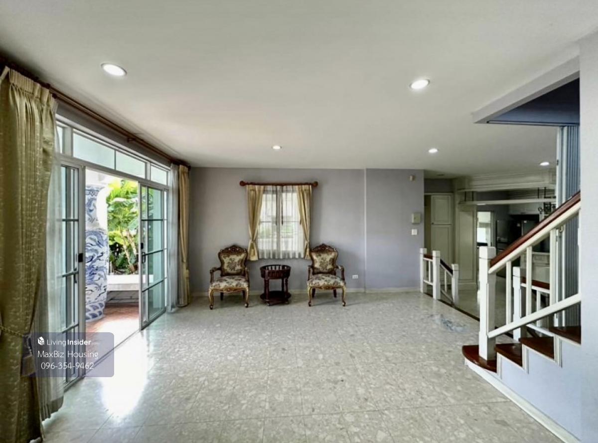Large house for rent in Nantawan Village, Suan Luang. Area 94.5 square meters The examination area is approximately 300 square meters. 5 bedrooms 4 bathrooms Spacious kitchen Complete with electrical appliances and furniture Parking for 4 cars Can raise animals Free WIFI throughout rental Free common fees Free grass cutting once a month. Rent 60,000 baht per month 1 year contract To move in, pay 1 month's rent in advance + 2 months' security deposit.