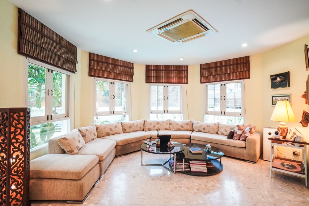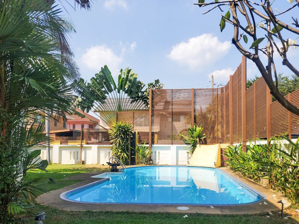 House for Sale in Saphan Sung Luxury 4Br 3Ba, 132.2sqw Tararom Ramkhamhaeng 150 Private Zone House for Sale at Saphl essan Sung. Experience a modern family lifestyle with the convenience of proximity to alential amenities. This luxury property is located just 150 meters from the MRT and near several international schools, making it an ideal location for families. Built with high quality and attention to detail by a Swiss entrepreneur, the house features spacious open areas, quality finishes, and a thoughtful design that promotes comfortable indoor and outdoor living. The property includes all furnishings, a big-screen TV, and high-end appliances. Simply bring your suitcase, and you're ready to enjoy your new home. The luxurious design and prime location of this property offer a blend of convenience and elegance, making it perfect for those seeking a superior living experience in Bangkok. Houses for Sale in Saphan Sung Property Details - Land 132.2 sqw - House 400 sqm - 4 Spacious bedrooms - 3 Bathrooms - 2 Living rooms - Separate access maid quarter/bathroom - Modern Kitchen - Large lap Swimming Pool - Outdoor covered Lounge with day beds and sofa - 2 car covered parking lots - 2 outdoor parking House for Sale at Saphan Sung Nearby Places - Orange Line Skytrain, Nom Klao Station – 150 meters ( 5 minute walk) - Suvarnabhumi Airport – 19.4 kilometers (23-minute drive) - The Paseo Mall Lat Krabang – 13.5 kilometers (22-minute drive) - RIS - Ruamrudee International School – 7.8 kilometers (16-minute drive) - Ascot International School – 5.8 kilometers (16-minute drive) - Karunvej Sukhapiban 3 Hospital – 7 kilometers (14-minute drive) - Kasemrad Ramkhamhaeng Hospital – 5.7 kilometers (14-minute drive) - Triam Udom Suksa Nomklao School – 4.5 kilometers (10-minute drive) - Accessible via two routes: Soi Ramkhamhaeng 150 and Soi Rat Phatthana 22 (entrance to Parkway Home Village) (ค่าใช้จ่ายวันโอน หารครึ่งระหว่างผู้ซื้อและผู้ขาย Transfer Fees 50/50) #ขายที่ดินพร้อมสิ่งปลูกสร้าง #ขายบ้าน #ascendestate #ซื้อขายที่ดิน #ขายบ้านสะพานสูง