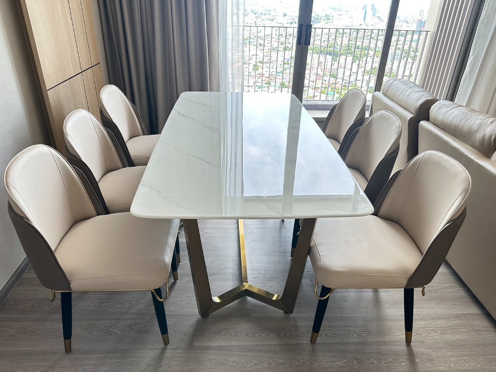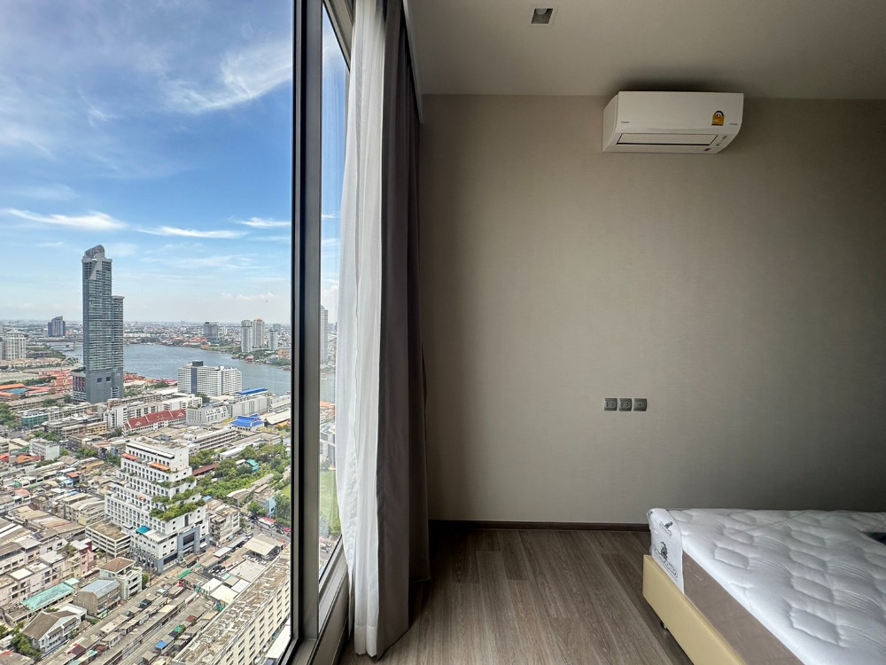 RHYTHM Charoenkrung Pavilion 2 bedrooms, 2 bathrooms, 38th floor size 107 sq m 100,000 baht/month (1 year contract) Decorated room, ready to move in. Complete furniture and electrical appliances: refr