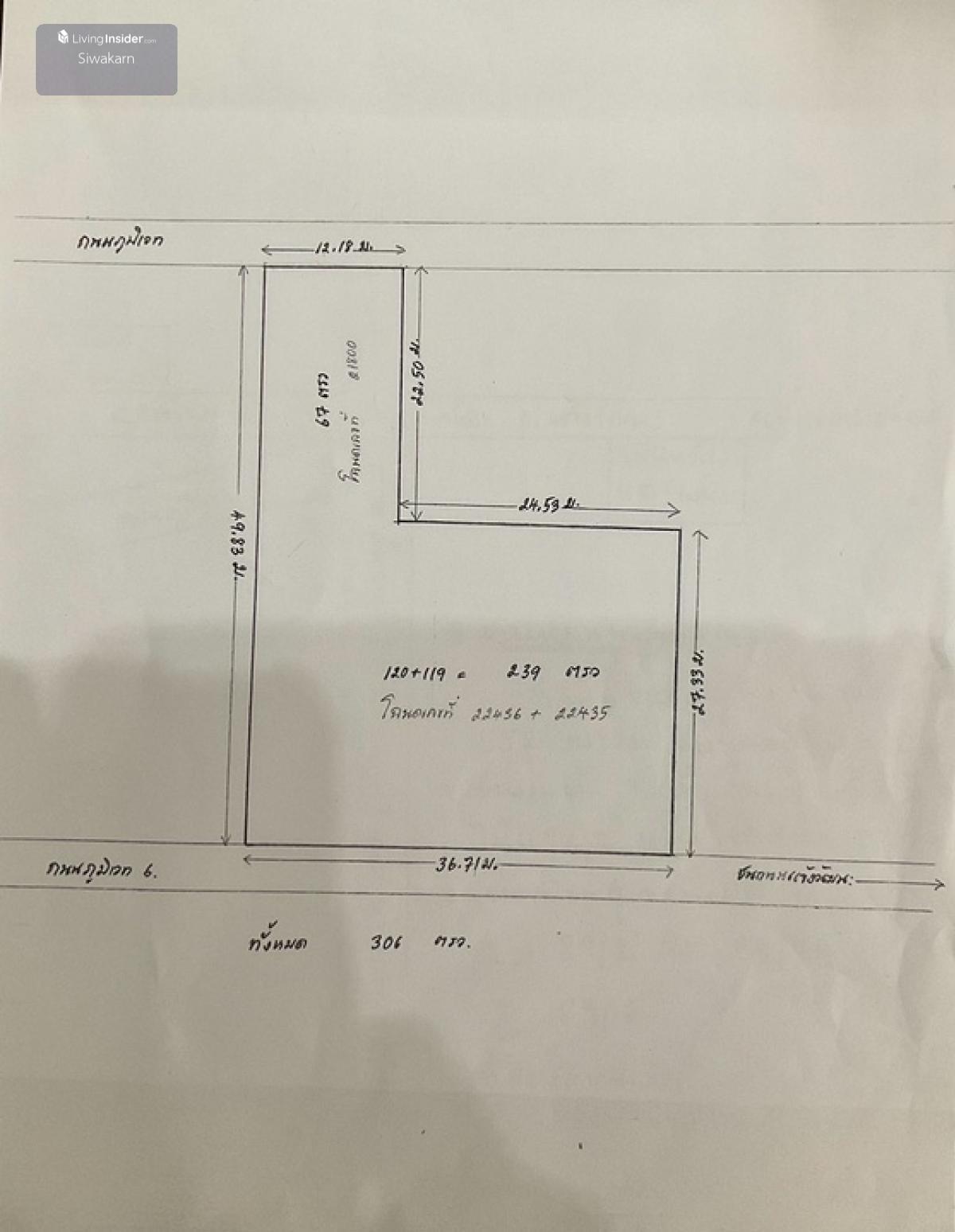 House for sale with land, location in the center of Pak Kret Total area 306 square wah or can be divided into 2 plots (239 sq. wah + 67 sq. wah) Width 36.7 meters, depth 27.33 meters Can enter and exit in many ways, both via Chaeng Watthana-Pak Kret Road 10 or via Phumiwet Road 6 Special price 26.9 million baht, transfer fee split in half Interested, contact Siwakarn Contact number Line: mooku01