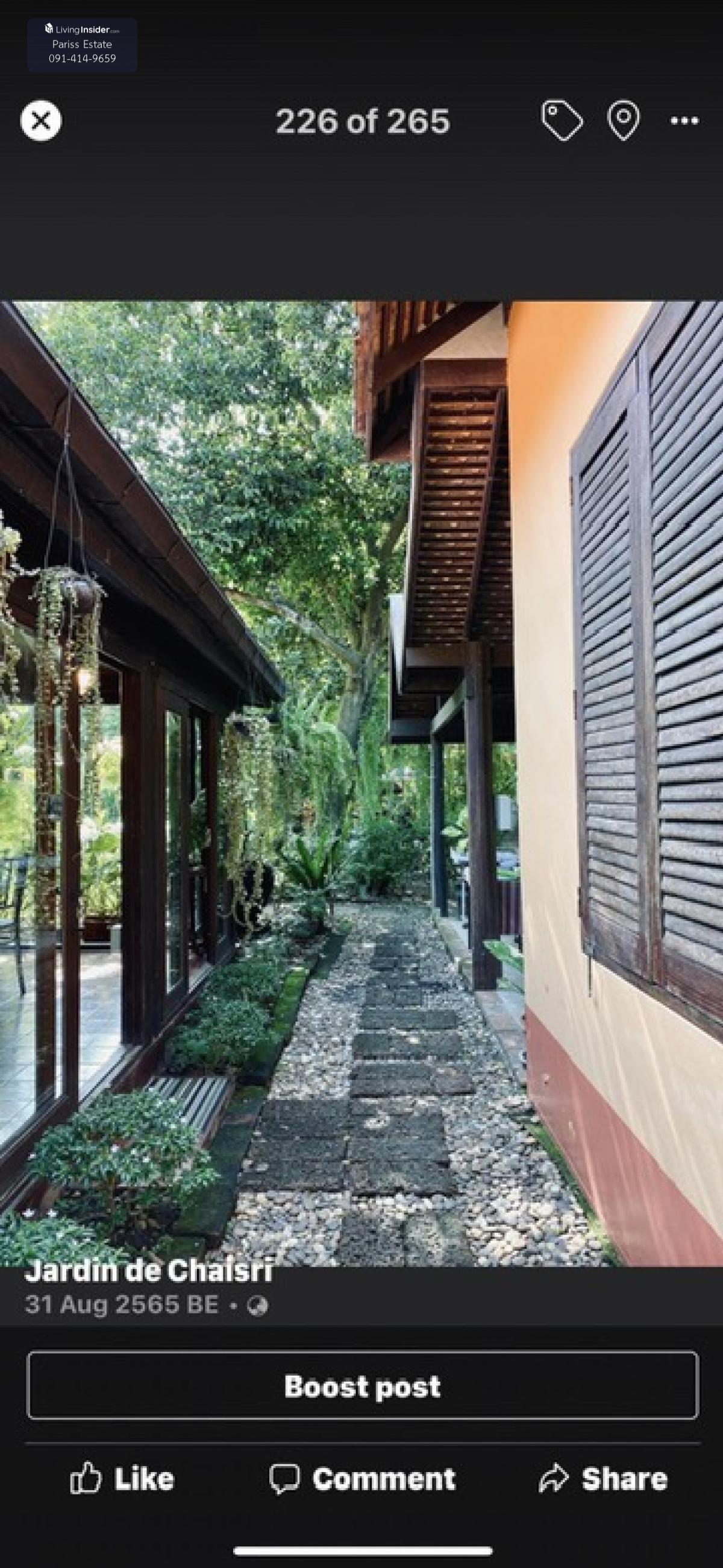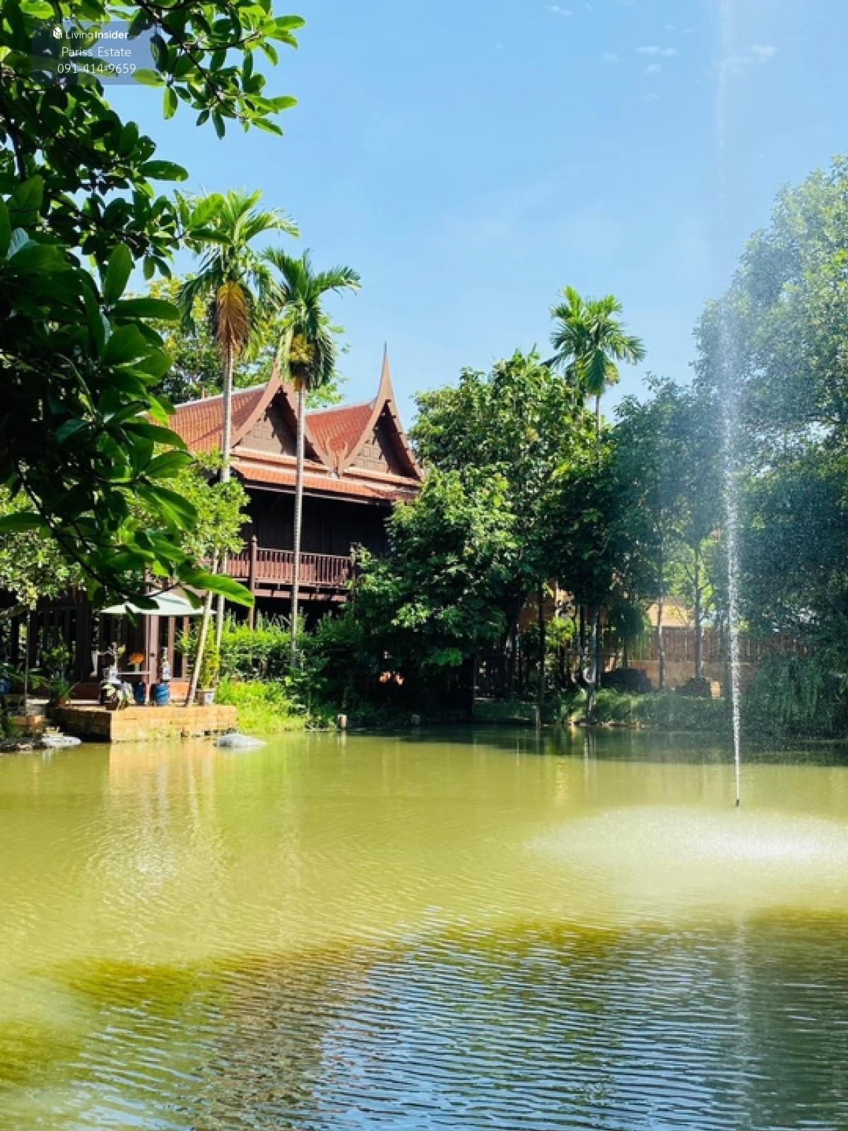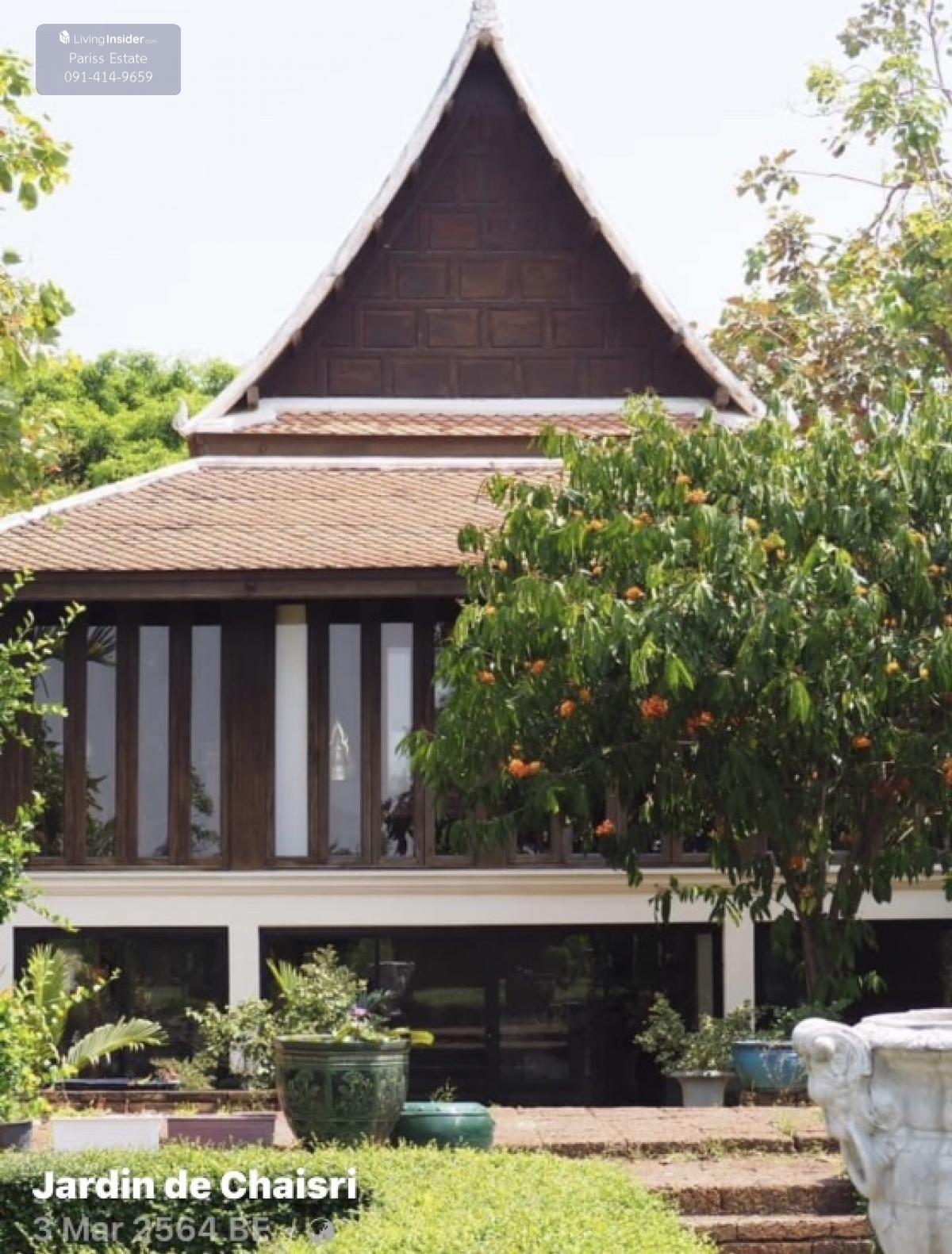 For sale: Thai style house with 9 rai of land Jardin de Chaisri Restaurant Nakhon Chai Si, Nakhon Pathom In the garden area there are various trees that have been planted for 18 years on an area of over 5.5 rai. There is a pond dug in the middle of about 100 sq m Area 9 rai, price 75 million baht with a total of 5 Thai houses as follows - Thai group house (see attached picture) has 1 twin house with a bathroom, the upper floor is connected to the floor of the house which is an open wooden floor, leading to a pavilion called Hon Nok. The floor of the upper house reaches to a single two-story house with no bathroom, but at the end of the house there is an open balcony. Next to it is another two-story cross house. The roofs of these three Thai houses are all covered with Sukhothai tiles. The upper floor of the house is a bedroom. The lower floor is a restaurant and cafe, which has been open for 9 years. Normally, the upper floor is a private area where customers are not allowed to go up. The lower floor of the group house in the middle is an open terrace with a red sandstone floor - Next to the Thai house group are two kitchen buildings, made of brick and cement, one story, with a kitchen roof covered with Sukhothai tiles, matching the Thai house. The floor is made of polished stone. - From the kitchen building is a garden with a walkway leading to a large two-story Thai-style house with a Sukhothai-tile roof. This house is a two-story brick and mortar house. The lower floor has sliding glass doors all around. There is a curved staircase inside and outside is a cement staircase leading up to the upper balcony in front of the house with railings around the balcony walls. The upper floor of the Thai-style house is made of hardwood throughout. The ceiling is bare and has no ceiling. The lower floor of this building is tiled with antique-patterned tiles. There is one bathroom downstairs. - Outside the Thai-style house is a wide open area next to the garden. The floor is paved with slate throughout, leading to a row of four single-storey sleeping houses. The roof of this sleeping house has orange kite tiles on the upper part, matching the other Thai-style buildings. -Next to the bedroom is a wooden house for the common people. -In this Thai garden, there are also two small Thai pavilions built by the pond - In front of the entrance is a parking lot for customers, which can accommodate about 7-8 cars. At the back of the shop, there is a large parking lot next to the shop, which can accommodate about 20 cars. - Next to the parking lot is a large dug lotus pond. - Next to the pond, behind the shop, there is a remaining area, a rice field of about 5 rai, for the buyer to fill and convert into a resort or accommodation to expand the business in the future -----------------------------Pariss Estate ♨️Provides services in receiving, arranging, renting-buying-selling for free until the transaction is completed Full-service real estate 👉 : Khun Kan Agent https://line.me/ti/p/J1To087-mh ☎️ : Tel. Contact number