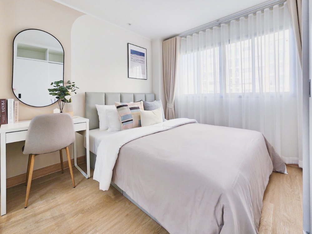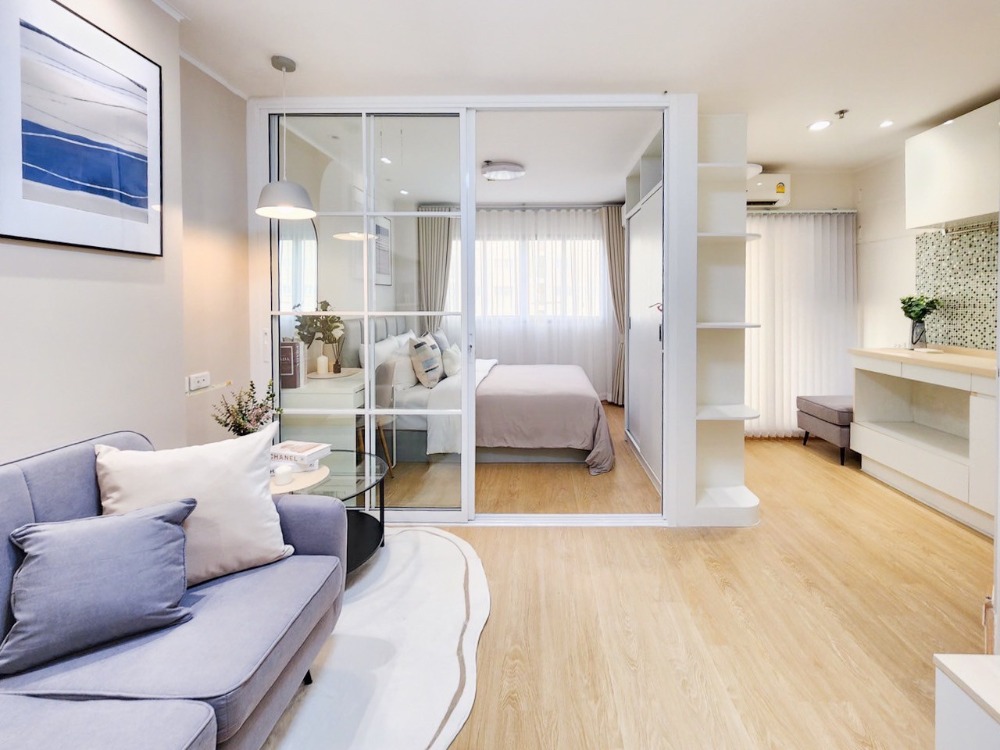 🌟 Condo on the main road, Ram Intra Km.8 🌟 .. The project has many facilities and there is a skytrain passing by. The room is beautiful, minimalist, and soft cute and adorable. You can carry your bag and move in!! 🎉 .. #Lumpini Condo Km8 #Lumpini Condo Ram Intra Nawamin #Ram Intra Condo #Nawamin Condo #Near Fashion Island Mall #Near the BTS Ram Inthra Km.8 Station . ╔═══════════╗ 🌟 Installment starts at only 5,000 baht 🌟 ╚══════════╝ . 🌸 Lumpini Condo Town Ram Intra-Nawamin (Ram Intra Km.😎 🌸 Building B, 5th floor Size 25 sq m., 1 bedroom partition room . 🛋️ Fully furnished, complete as shown in the picture - Newly changed floor!!! - Newly painted - Built-in bed furniture, built-in TV shelf Built-in dressing table, built-in kitchen, great value, exactly as shown in the picture, with mattress, blanket and pillows, complete set - Sofa, carpet, coffee table, give them all away - 2-layer curtains - 2 air conditioners 🌟 - Bird net . 📌Map:: https://maps.app.goo.gl/pftYKCGo7ZiMNtmLA?g_st=ic . 🤗💬If interested in details, feel free to contact us for a free consultation 📞 May Contact number