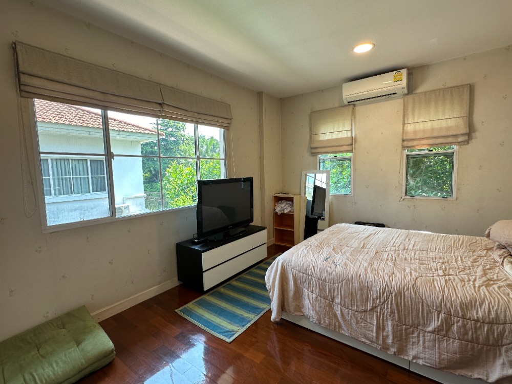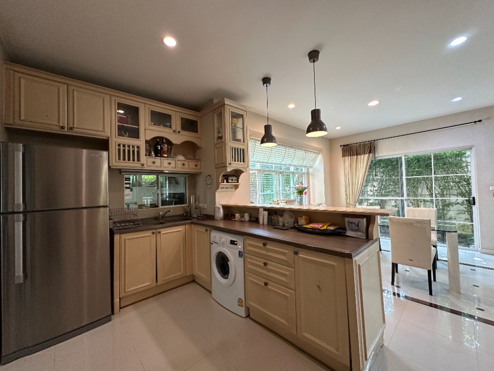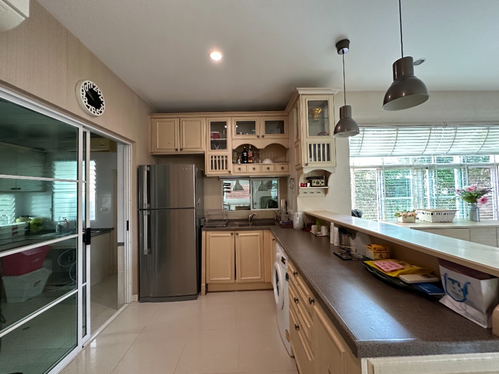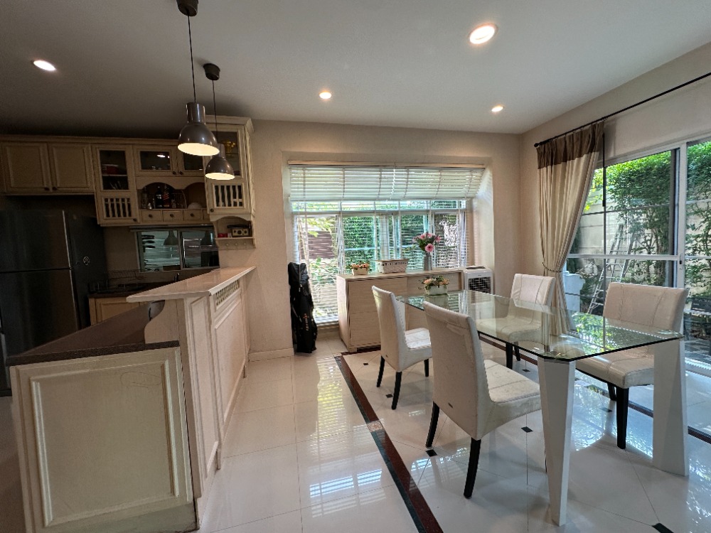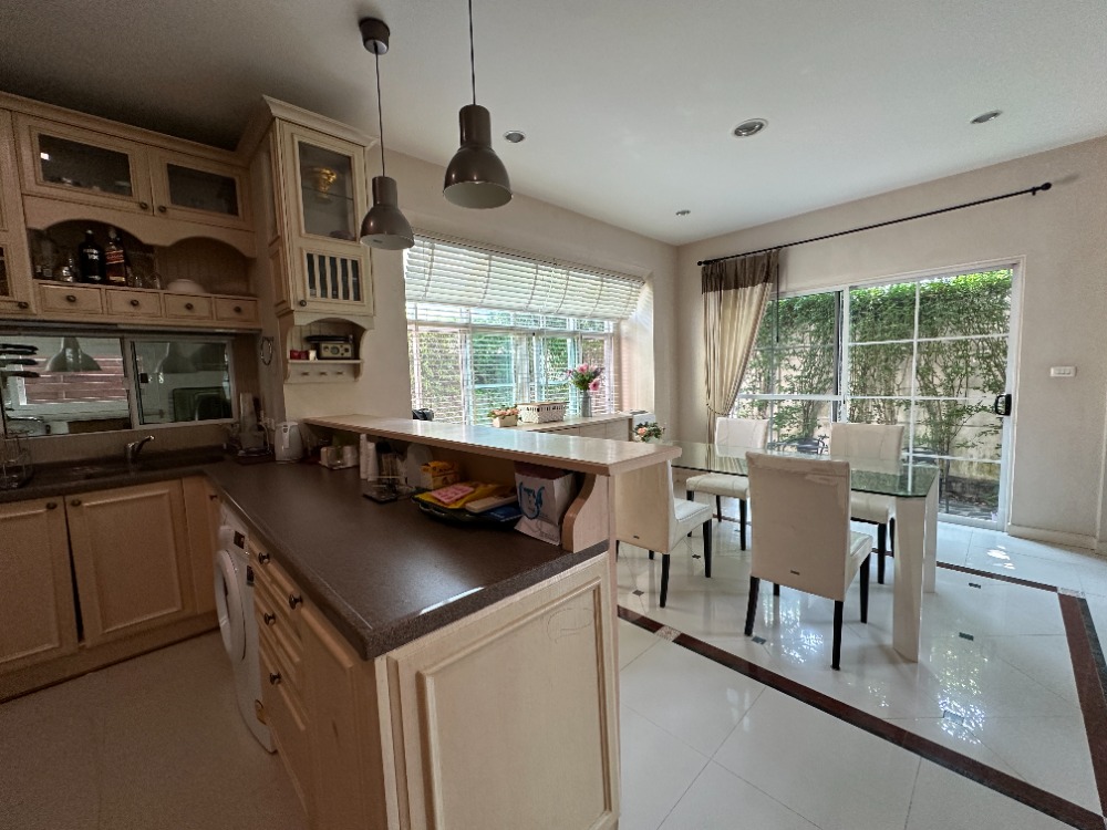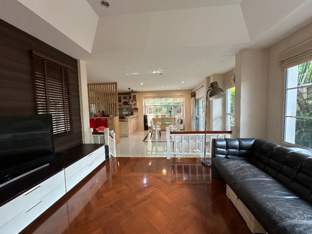 🔥 Selling price 𝟭𝟱,𝟵𝟬𝟬,𝟬𝟬𝟬 baht 🔥 (Reduced from 16.9 million) (House at this price, this location, this big area. Its very rare) ————-🌻 Details Area 97.3 sq m. Usable area 215 sq m. 3 bedrooms, 3 bathrooms, 2 living rooms, 1 kitchen There is parking space for 6 cars in the house. The house faces south . Common fee is 36 baht per square wa . Corner house near the central garden ————- 🌻 Highlights House with beautiful window views from every angle. Nature is private, behind the alley there is privacy There is space that can be renovated for future expansion. The house is in a good location, good feng shui, good social environment, and underground power lines and cables The project can walk to the central garden near all 3 points ————- 🚗 Transportation Good location at the beginning of Ratchaphruek Road, near Sathorn, only 8 km., convenient travel, near Interchange Bang Wa, only 1.8 km.