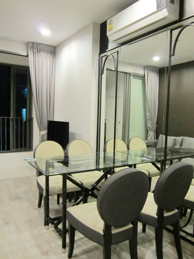 Ideo Mobi Sukhumvit 81 2 bedrooms, 2 bathrooms, 11th floor size 54 sq m. 27,000 baht/month Furnished room, ready to move in. Complete furniture and electrical appliances: refrigerator, water heater, T