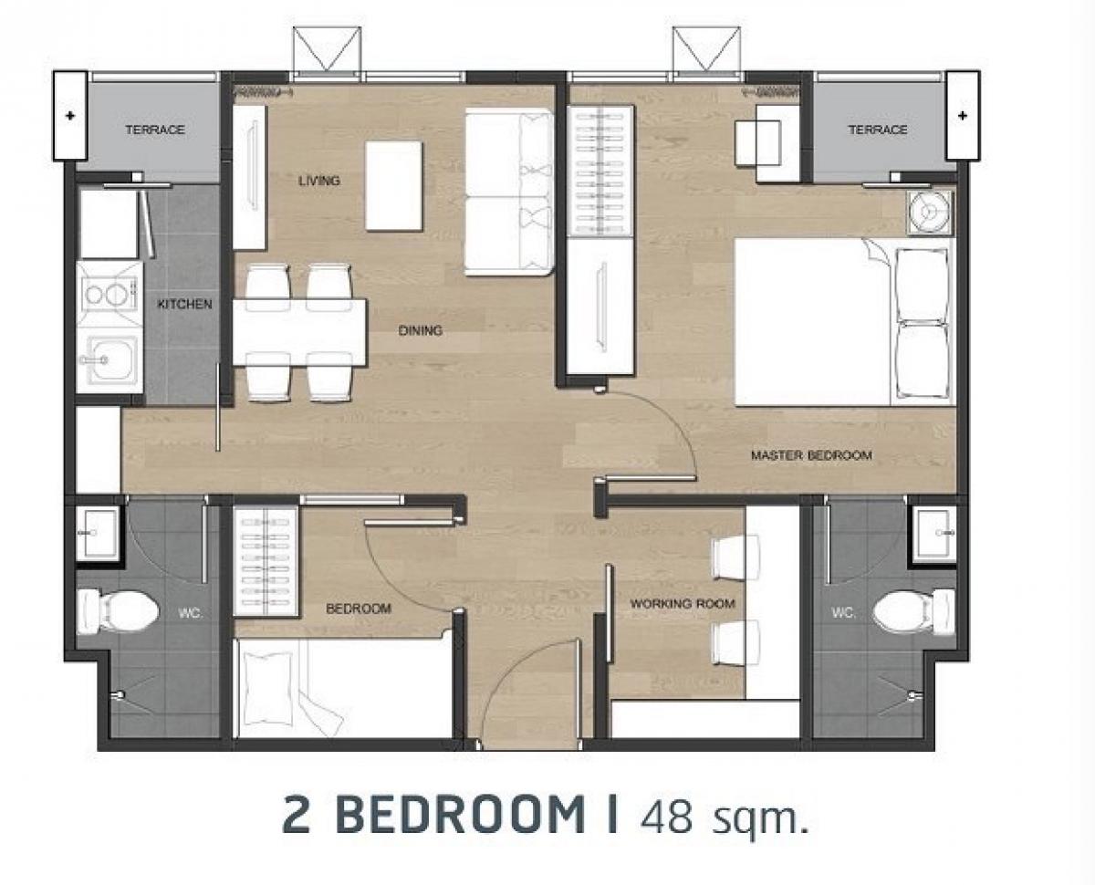 2 Bedroom for rent at Groove Condo Ratchada -Ladprao 48 near MRT Ratchada and BTS Powana 3th floor, 48 sq.m, 20,000 Bath/Month, 1 years contract. In advance 1 month + Deposit 2 months Furniture and el
