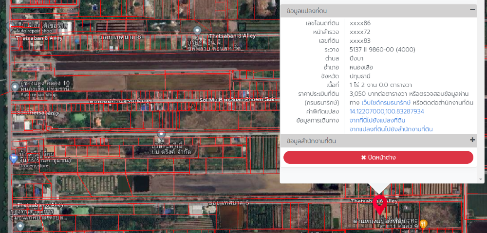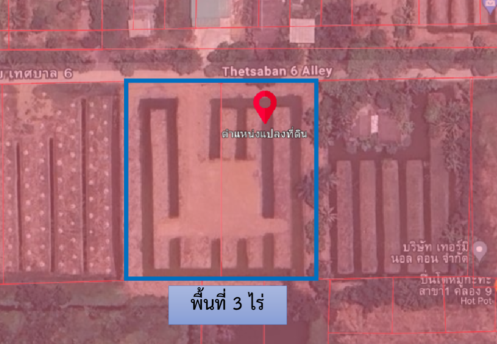Land for sale, Nong Suea, Khlong 10, 3 rai, next to a public road, Soi Thetsaban 6, Road No. 3261, Pathum Thani (Owner sells it himself) Contact number Mr. Chalit 3,500 baht per square wa, for the whole plot, 4,200,000 baht transfer fee + tax at the Land Department, buyer pays Burden-free title deed, ready to transfer Location: Soi Thetsaban 6, Bueng Ba Subdistrict, Nong Suea District, Pathum Thani 12170 GPS coordinates: 14.12224710, 100.8331778 https://maps.app.goo.gl/KnBrGeYgY97vTTYy5 Total area 3 rai (2 title deeds) Currently, it is an area that has been filled in and made garden furrows and planted support trees. Hainan and Thai buoyang trees, a total of 584 trees, currently height 1.5 – 2 meters Width 64 meters, currently there is water and electricity passing through the front of the land next to a public road . The pink area travels from Khlong 10 Road (HWY 3261) into Soi Thetsaban 6, 800 meters deep , suitable for housing, garden houses, investing for profit Contact channel: Mr. Chalit Contact number