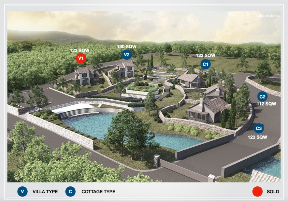 The Cotswold Khao Yai is inspired by a small village in the Cotswold area, an ancient countryside in the south of England. The word Cot means a small house (Cottage) and Wold means a forest. When combined, it clearly conveys the atmosphere of a cottage village surrounded by hills and forests. Nestled in the heart of Pakchong, the Cotswold features 8 luxury cottages that exude unrivaled rustic charm. Situated on the hill of Tumbon Wangkata and within reach of a golf course and other leisurely amenities, this prestigious residential community anchors on a peaceful yet convenient location. Unit detail - Type House: Cottage 2 - Price 11,900,000 THB - Usable Area: 152 Sq.m. - Land Area: 112 Sq.w. Highlights of the project ⭐ ️Outstanding with a unique English Village style design. ⭐ ️High-quality materials, durable and trouble-free. ⭐️ Complete utility system both water and electricity management systems ⭐️ Garden care service and housekeeping ⭐️ Security system 24 hours a day. Project information - Name: The Cotswold Khao Yai - Housing type: Vacation home - Location: Ban Nong Khi Tun Village, Wang Kratha Subdistrict, Pak Chong District, Nakhon Ratchasima Province Nearby places - Khao Luk Chang Bat Cave 1.2 km. - Wonder Van Khao Yai 2 km. - Khao Yai Floating Market 5.3 km. - Toscana Valley Golf Course 7.9 km. - Ban Tha Chang Natural Spring Pond 18.5 km. - Palio Khao Yai 19.8 km. - Khao Yai National Park 36 km. Make an Appointment Contact number (AURA), Contact number (คุณออร่า) Contact email