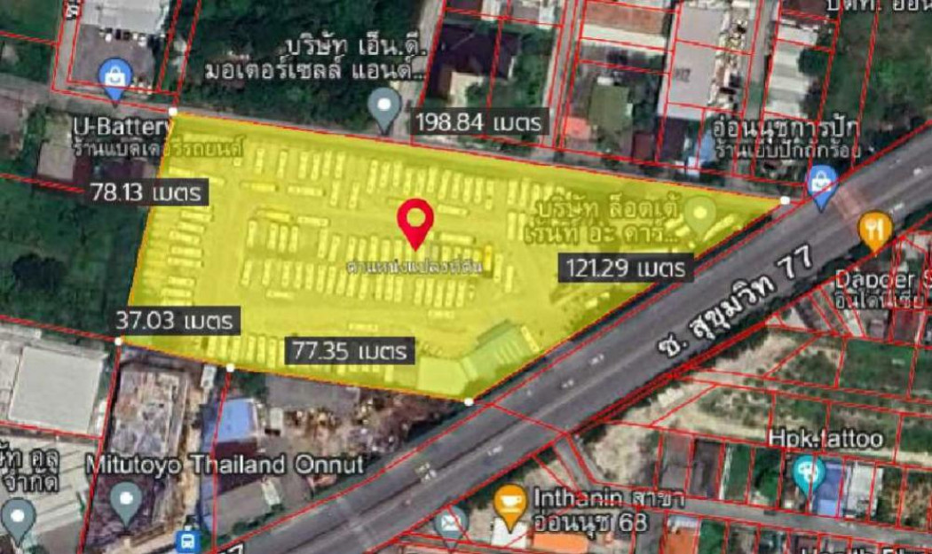 Land for rent 8 rai on the main road. Beautiful land, good location, Sukhumvit 77 600,000 baht per month Property details Land size: 8 rai Land features Reclaimed land: Beautiful land, good environment Prime location: On On Nut main road (Sukhumvit 77) Distance: Only 500 meters from the Yellow Line BTS, Srinakarin Station Location: Opposite the On Nut branch of Thailand Post Suitability for use Suitable for business: Car tent, market, gas station, office, warehouse, storehouse, restaurant Convenient transportation: Near the BTS and Suvarnabhumi Airport (only 20 minutes) Highlight In front of the main road: On Nut-Sukhumvit 77 Distance to the electric train: only 500 meters Distance to Suvarnabhumi Airport: only 20 minutes Long-term rental possible Interested persons, please contact: Take a picture of the house and send it to Line@ For additional information or to make an appointment to view Line ID: @bird888 (dont forget to include @) Line link: https://lin.ee/7OVtkqn Tel: Contact number Bird