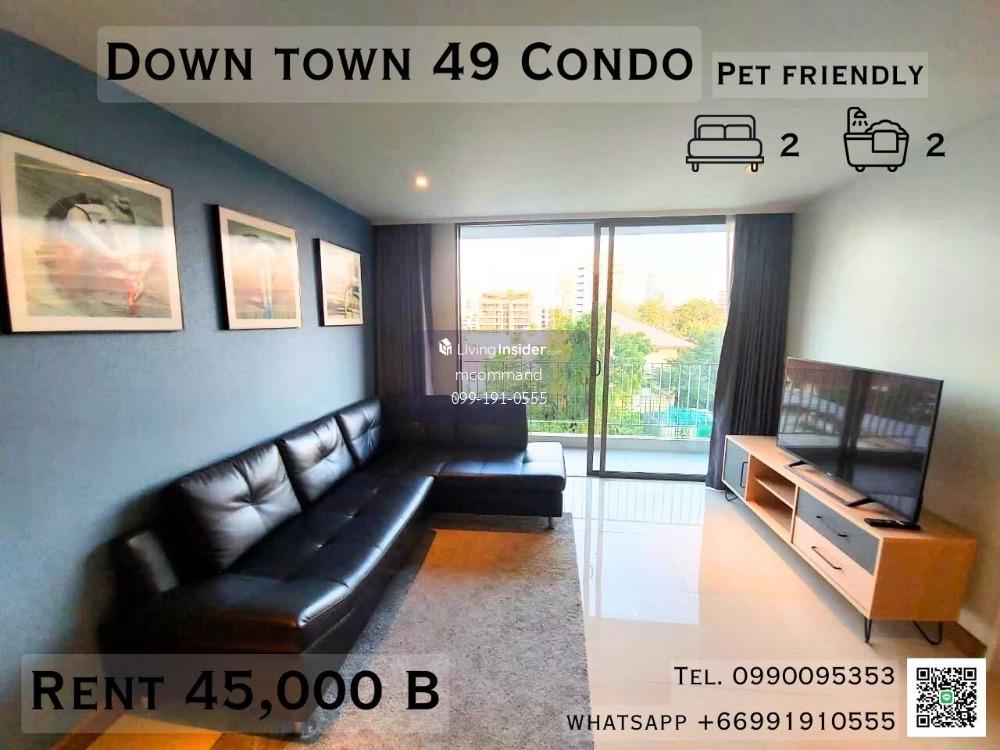 Downtown 49 Condo (Pet Friendly) for Rent - Price: 45,000 THB/month Description: - Size: 69 sqm - Building A, 6th Floor - Fully Furnished - Bedrooms: 2 Double Bedrooms - Bathrooms: 2 - Open Kitchen -