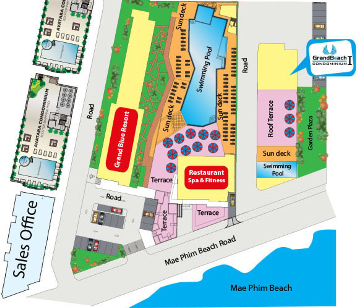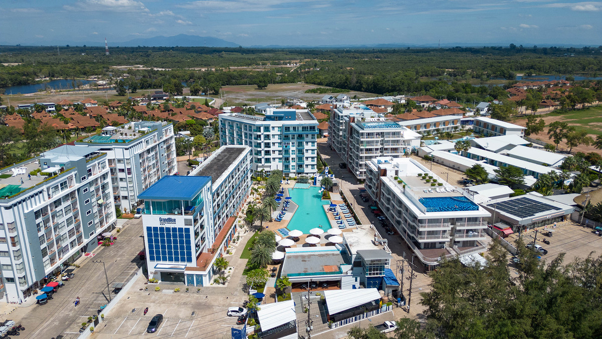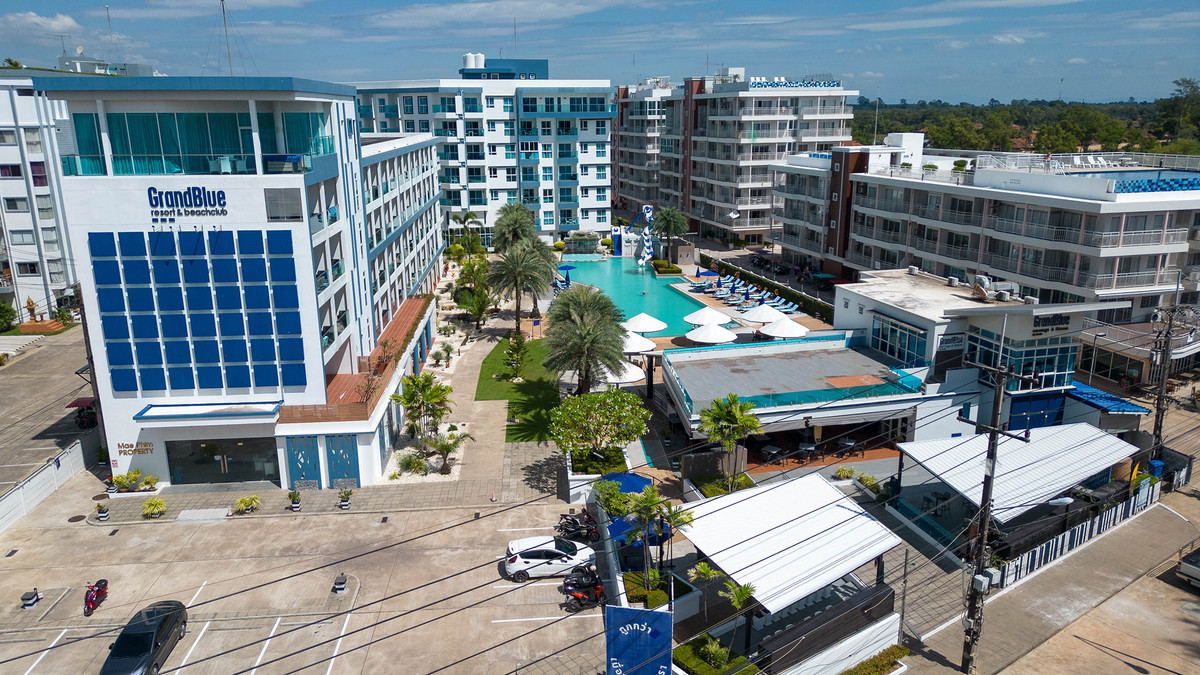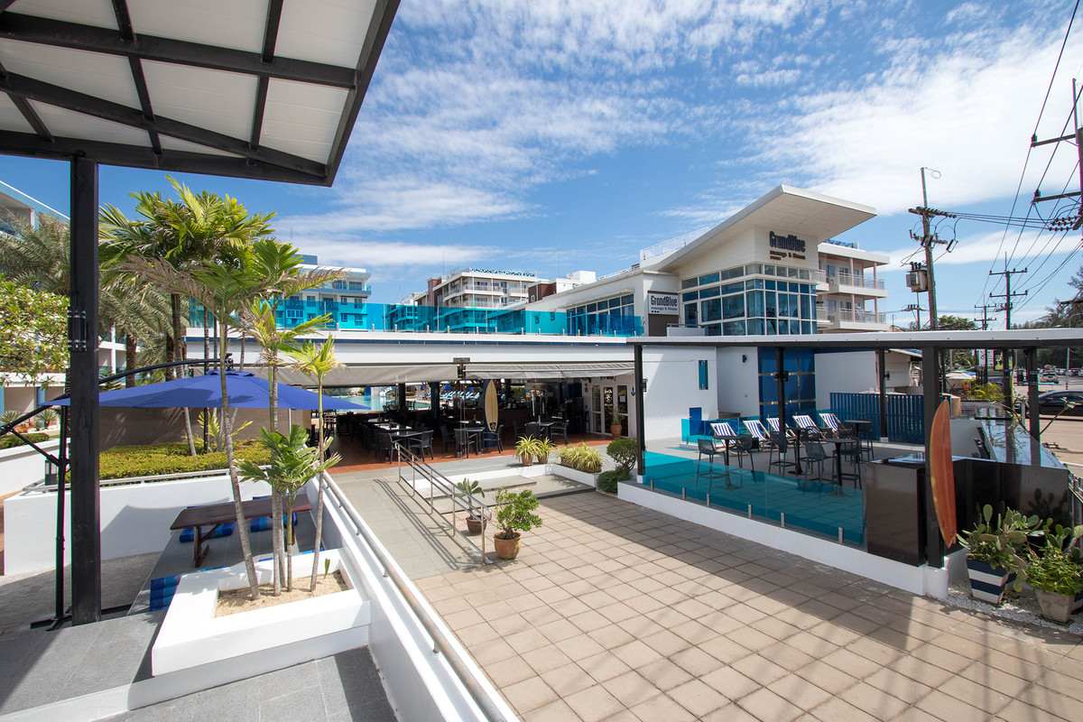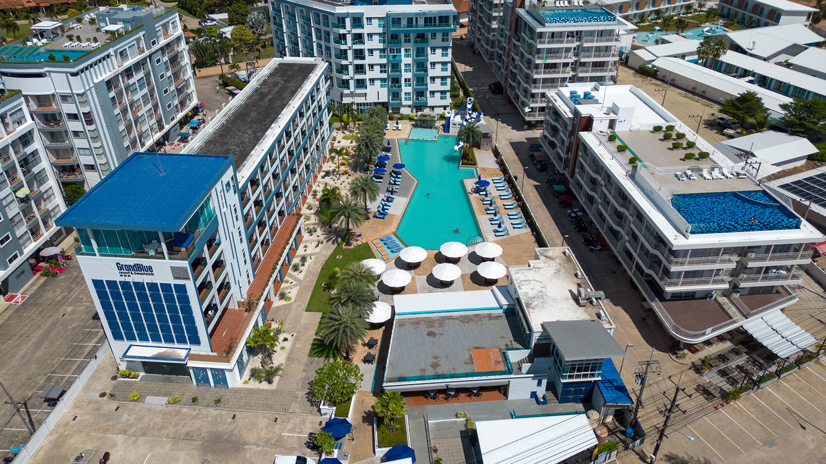 GrandBlue Resort & BeachClub - Mae Phim Beach, Rayong, Thailand. A place to slow down, unwind and feel good about life. Cool, exclusive and laid back lifestyle in an elegant setting with a Modern Mediterranean design theme. Impressive pool-area, BeachClub, Lounge and Restaurant at a great beachfront location in the center of the popular Mae Phim Beach. The Resort offers comfortable Superior, De Luxe and Family 2 bedrooms with large terraces, all facing to the pool area and the blue ocean. Special features are room with connecting doors. Grand Blue Resort ....more than expected. • GrandBlue Resort & BeachClub. Main building, number of rooms, total 68. • De Luxe Rooms, 57 units. Family 2 bedrooms, 10 units. Penthouse, 1 unit. • 20 of De Luxe Rooms have connecting doors. • Mezetto Restaurant & Bar, 100+ seats. • Buffalo Beer Garden, 40+ seats. • Laundry Building, fully equippe