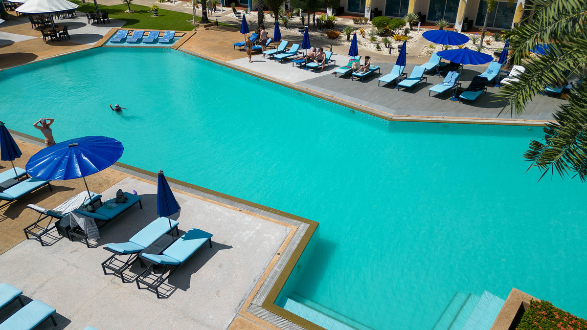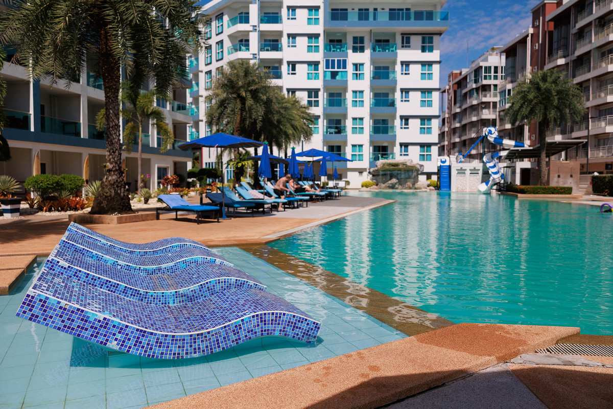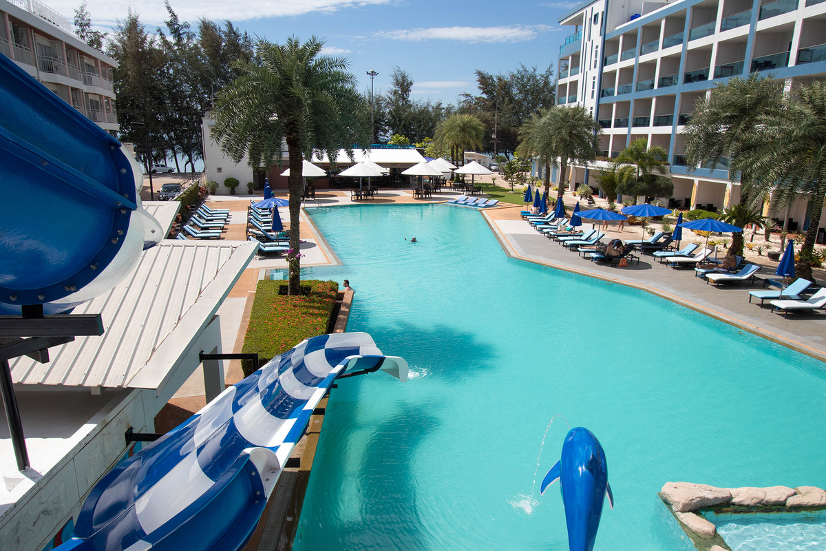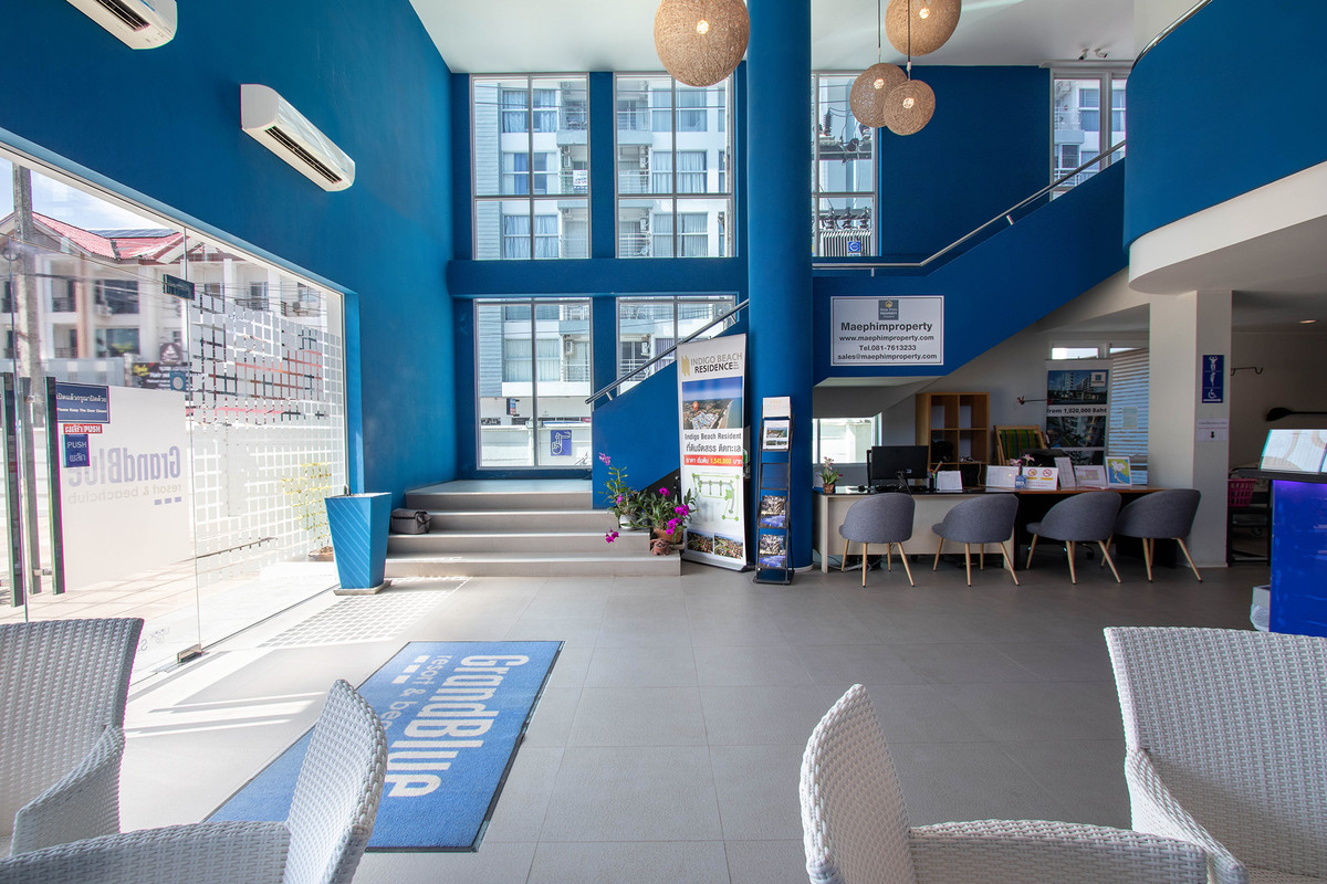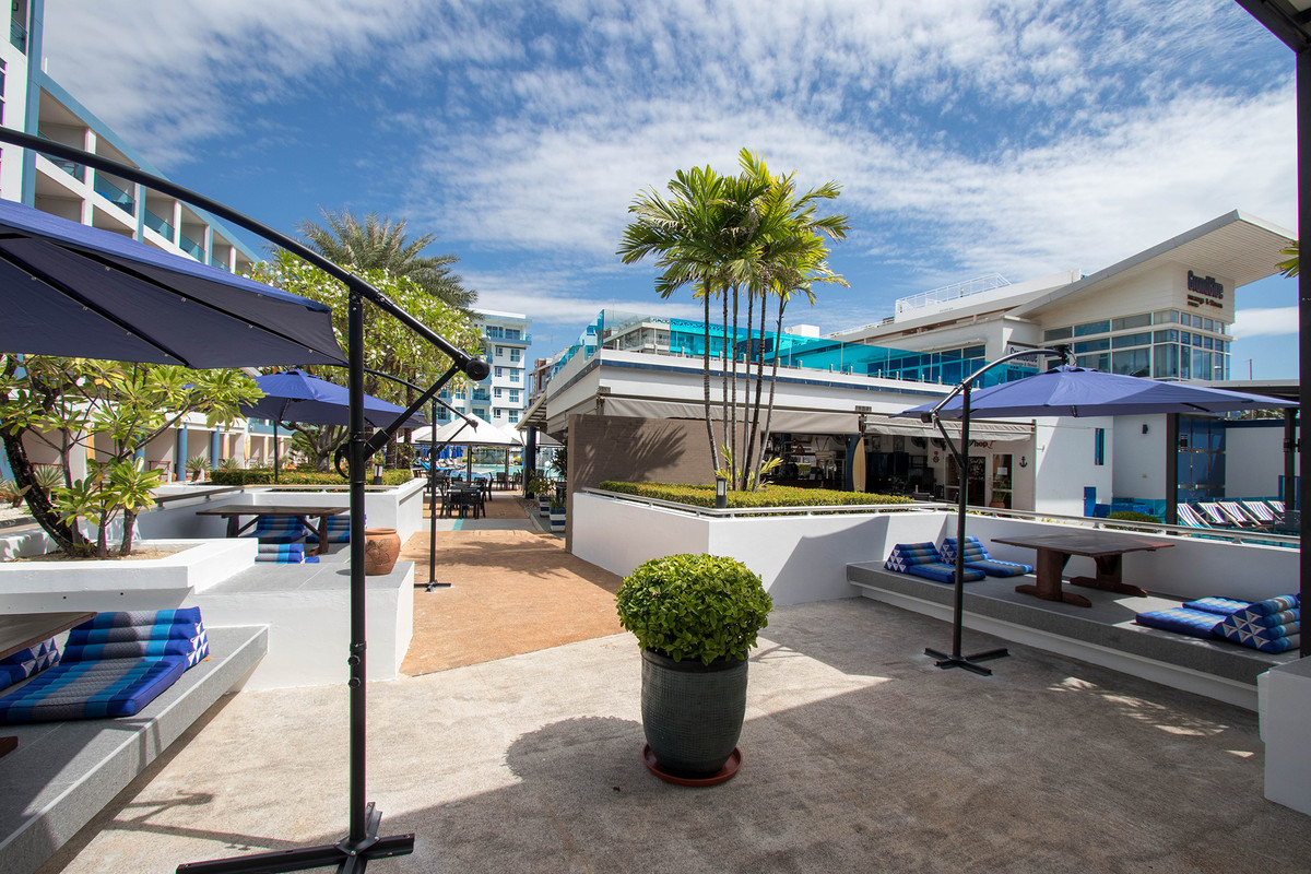 GrandBlue Resort & BeachClub - Mae Phim Beach, Rayong, Thailand. A place to slow down, unwind and feel good about life. Cool, exclusive and laid back lifestyle in an elegant setting with a Modern Mediterranean design theme. Impressive pool-area, BeachClub, Lounge and Restaurant at a great beachfront location in the center of the popular Mae Phim Beach. The Resort offers comfortable Superior, De Luxe and Family 2 bedrooms with large terraces, all facing to the pool area and the blue ocean. Special features are room with connecting doors. Grand Blue Resort ....more than expected. • GrandBlue Resort & BeachClub. Main building, number of rooms, total 68. • De Luxe Rooms, 57 units. Family 2 bedrooms, 10 units. Penthouse, 1 unit. • 20 of De Luxe Rooms have connecting doors. • Mezetto Restaurant & Bar, 100+ seats. • Buffalo Beer Garden, 40+ seats. • Laundry Building, fully equippe