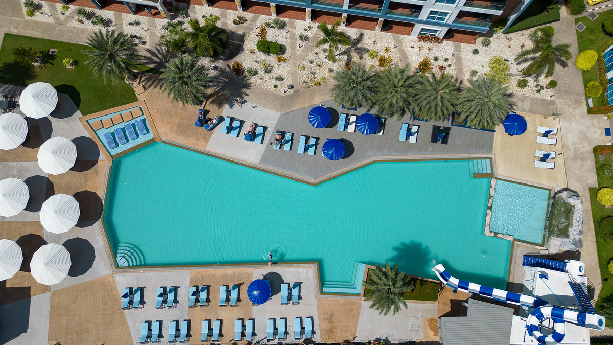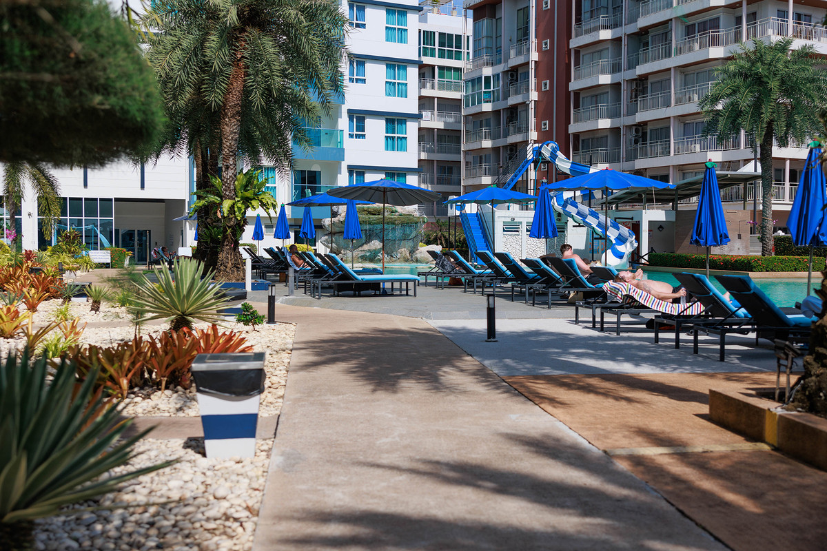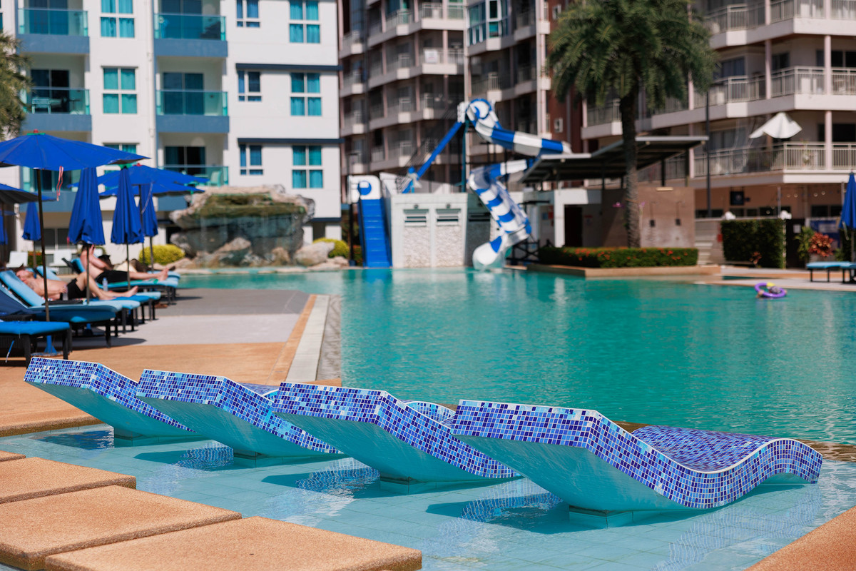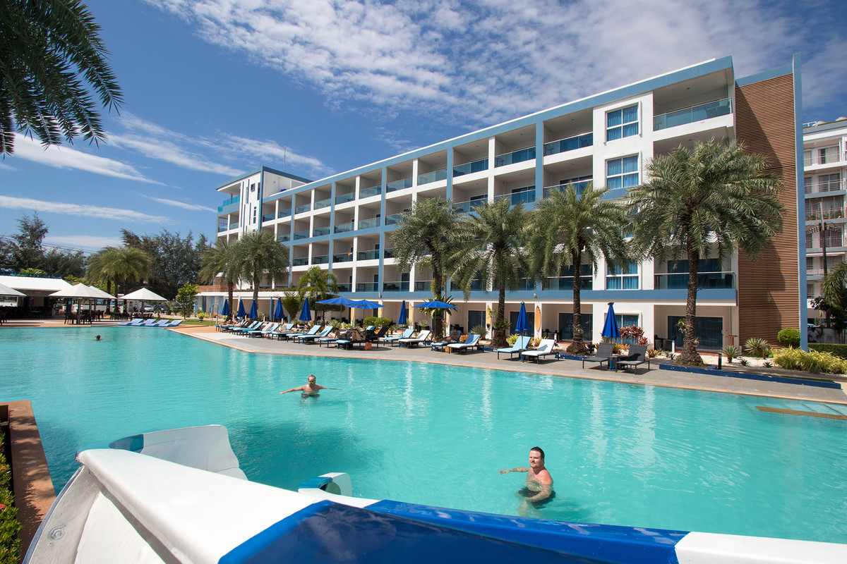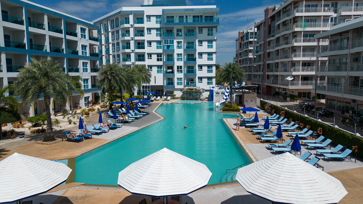 GrandBlue Resort & BeachClub - Mae Phim Beach, Rayong, Thailand. A place to slow down, unwind and feel good about life. Cool, exclusive and laid back lifestyle in an elegant setting with a Modern Mediterranean design theme. Impressive pool-area, BeachClub, Lounge and Restaurant at a great beachfront location in the center of the popular Mae Phim Beach. The Resort offers comfortable Superior, De Luxe and Family 2 bedrooms with large terraces, all facing to the pool area and the blue ocean. Special features are room with connecting doors. Grand Blue Resort ....more than expected. • GrandBlue Resort & BeachClub. Main building, number of rooms, total 68. • De Luxe Rooms, 57 units. Family 2 bedrooms, 10 units. Penthouse, 1 unit. • 20 of De Luxe Rooms have connecting doors. • Mezetto Restaurant & Bar, 100+ seats. • Buffalo Beer Garden, 40+ seats. • Laundry Building, fully equippe