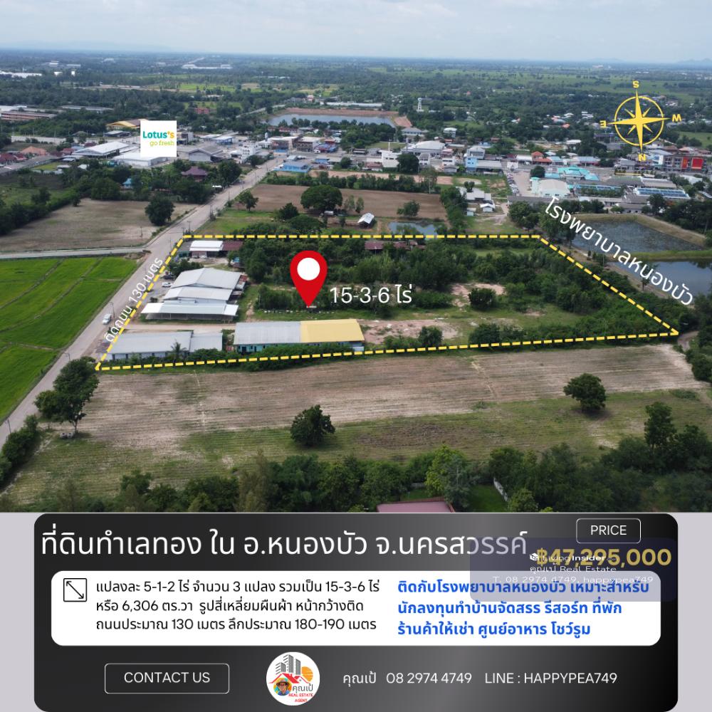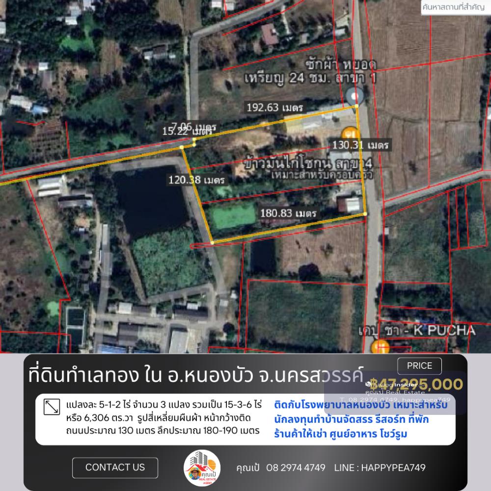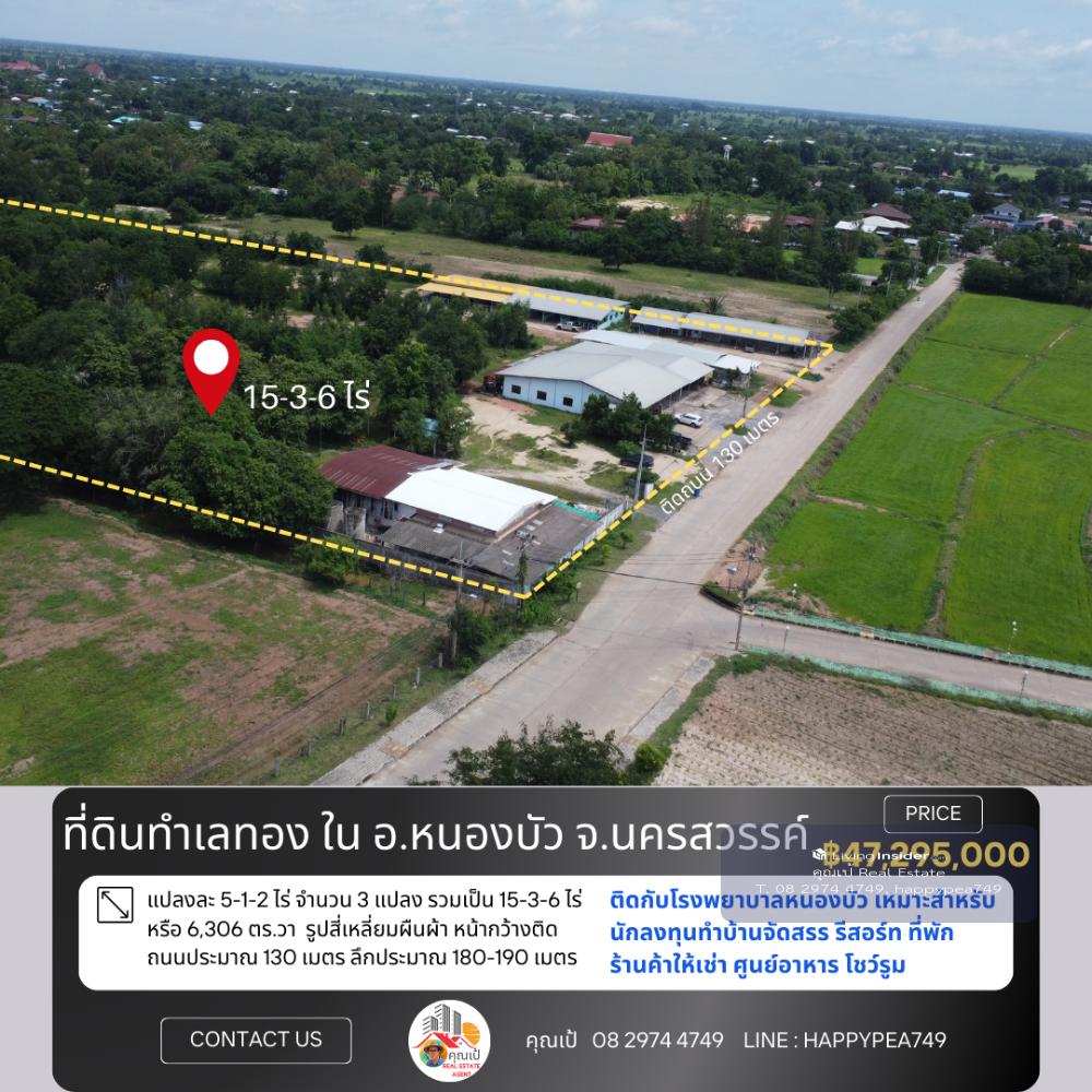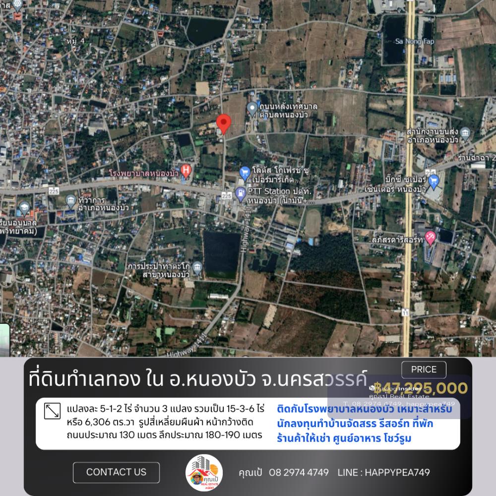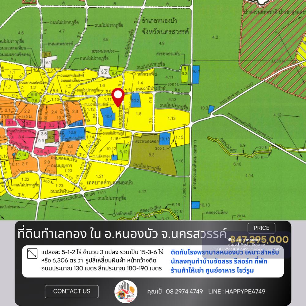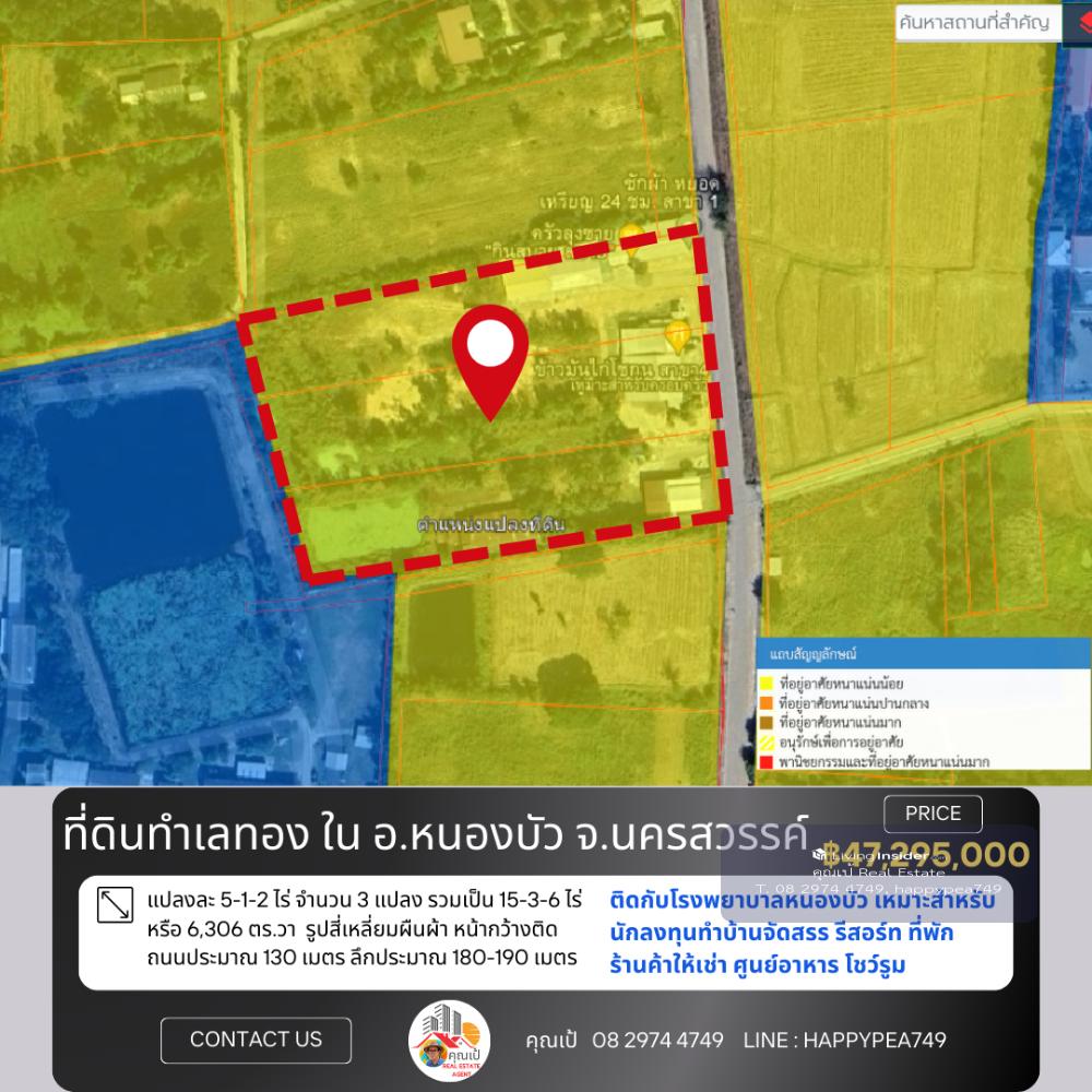 📒 Land in Nong Bua District, very good location, near the community, front on the road, back on Nong Bua Hospital The land is rectangular in shape, with a width of approximately 130 meters facing the road, a depth of approximately 180-190 meters, and faces northeast. Suitable for real estate investors Do various land development projects, whether it be housing developments Shops for rent, food court, showroom Good environment, convenient, water and electricity ready. The owner is very kind. Selling because I cant take care of it anymore. I want to relax. If you are really interested, come and talk about the details. 🚧 Location 📍 Nong Klap Subdistrict, Nong Bua District, Nakhon Sawan 60110 Location coordinates Google Map https://maps.app.goo.gl/2sz1vmQoLPmgxyBP6 📍 Nearby important places Approximately 350 meters from Nong Bua Subdistrict Municipality About 500 meters from Lotus Go Fresh Supermarket, Nong Bua. About 650 meters from Nong Bua Hospital It is a land title deed, NS.4, Red Garuda, 3 title deeds. 🏷️ Title deed no. 1 = 5-1-2 rai (2,102 sq.wa) Title deed no. 2 = 5-1-2 rai (2,102 sq.wa) Title deed number 3 = 5-1-2 rai (2,102 sq.wa) => Total land area 15-3-6 rai 🌿 or 6,306 sq.wa 🧶 Yellow city plan, low density residential type 💰 Price information Selling price 3,000,000 baht/rai or 7,500 baht/square wa =>Total selling price 47,295,000 baht, transfer fee for all parties, half each 🌟 A great investment opportunity that you shouldnt miss! 🔑 📢For more information, please contact 🤵Khun Pae Real Estate Agent accepts deposits, buys and sells beautiful land for investment, business and residence 📞Tel. Contact number 📟 Line : happypea749 Click https://line.me/ti/p/WbmkWfUuvu 🎉See other land plots https://www.livinginsider.com/public_profile/1/eDbjy.html #Nakhon Sawan land #Nong Bua land #Land next to the road #Highway 11 #In Buri-Chiang Mai #Highway No. 11 #Investment #Factory land #Restaurant #Construction materials #Gas station #Agriculture #Farm #Investor #Investors #Khok Nong Na #Large land plot #Land for sale #Nakhon Sawan #Good location land #Business investment #Real estate #Trading business #Empty land #Highway #Investment opportunity