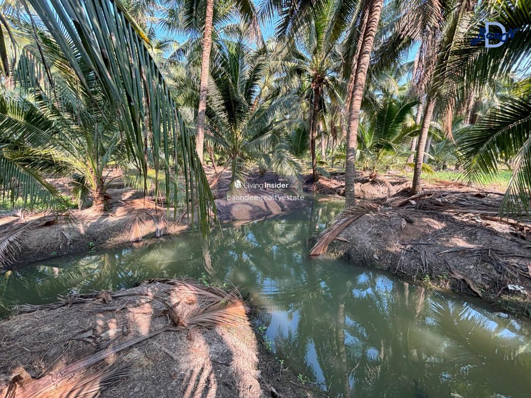 Land for sale, Don Kruai Coconut Plantation, 31 rai 25 sq m, with abundant access to water.