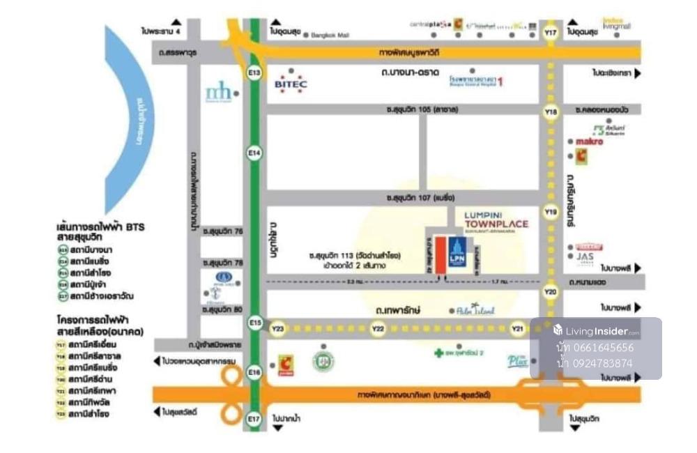 Lumpini Townplace Sukhumvit-Srinakarin House near BTS Samrong Convenient travel to Suvarnabhumi Airport (2 BTS lines, Samrong-Srinakarin) For rent 39,000 / month 3-storey townhome (alley opposite Imporium World, Samrong, in front of the alley there is BTS Samrong, on the other side BTS Srinakarin) Located in shopping areas throughout the alley Land size starting at 18.0 square wah, usable area approximately 161 square meters 1st floor, 2 car parking spaces, front porch, living room, dining area, food preparation area, 1st floor bathroom, laundry area or area for Thai kitchen 2nd floor, master bedroom with balcony, bathroom in master bedroom, multipurpose room, stair hall 3rd floor, 2 bedrooms, 3 bedrooms, 2 bathrooms, stair hall Facilities around the project * Shopping malls : Jas Urban Srinakarin, Foodland Srinakarin, Imperial World Samrong, Lasalle Avenue, Lotus Plusmall Srinakarin, Big C Samrong, Big C Srinakarin, Palm Island, Makro Srinakarin, Central Plaza Bangna * Hospitals : Samrong Hospital, Synphaet Hospital Theparak, Chularat 2 Hospital, Manarom Hospital, Bangna 1 Hospital, Sikarin Hospital, Thai Nakarin Hospital * Markets : - * Educational institutions : Wat Dan Samrong Secondary School, St. Joseph Bangna School, Bangkok Patana International School, Thai-Singapore International School, La Salle School Bangkok, Debsirin Samutprakarn School, Berkeley International School * Nearby office buildings : BITEC Bangna