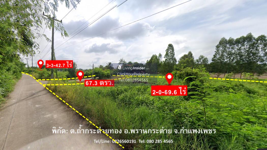 CYP177 Land for sale #Close to Highway 101 Kamphaeng Phet #only 14 meters. T.Tham Kratai Thong, A.Phran Kratai, Kamphaeng Phet 62110 6 rai 79.6 sqw. (total 3 plots) Close to Highway 101 Kamphaeng Phet-Phran Kratai, Sukhothai Province (101) 2 sides of public roads Selling price 750,000 baht per rai Total 4,339,300 baht Transfer fee 50/50 Highway Kamphaeng Phet-Phran Kratai Line, Sukhothai Province (101) only 14 meters Phran Kratai Hospital Wat Kutikaram Phran Kratai Municipality Ban Khao Sawang Arom School Phran Kratai Pittayakhom School Thammarat School Sabai Dee Resort Phran Kratai Lotus Go Fresh Supermarket Phran Kratai Phran Kratai Car Care More information please Tel Contact number Tel/Line Contact number