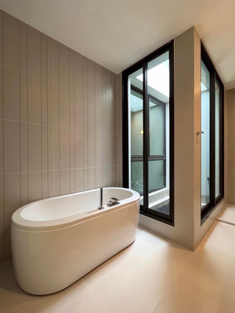 Single house for sale, 3 floors, Baan Klang Muang CLASSE, Ekkamai-Ramintra, new house - Land area 52.6 sq.wa. Usable area 346 sq.m., 5 bedrooms, 5 bathrooms Location: Sukonthasawat Road 19, Lat Phrao Subdistrict, Lat Phrao District, Bangkok - Land area 52.6 sq.wa. - Usable area 346 sq.m. - 5 bedrooms - 5 bathrooms, every room has a balcony + windows - 1 bedroom + 1 bathroom for the maid - Double volume living room - Etna house model - 3 parking spaces - The front of the house faces south - Common area fee 50 baht per sq.wa. - New house from the project, never occupied - 8 air conditioners New house from the project, never occupied Very good location along Ram Intra-Achanong Expressway Its hard to find this price Facilities -Clubhouse -Salt water swimming pool -Kidney pool -Fitness -Public park -CCTV -Access Card Control system -24-hour security system Selling for only 26,500,000 baht Transfer fee each half For more information, please contact Khun Phon at Contact number Line official: @ 424ykyso (with @ in front) Line Add Click https://lin.ee/6UsOqDH Line ID: Contact number Agent Services for selling houses, land, condos, all types of real estate Free marketing fees until sold. Take care of everything from the beginning until the transfer date. Free loan application service