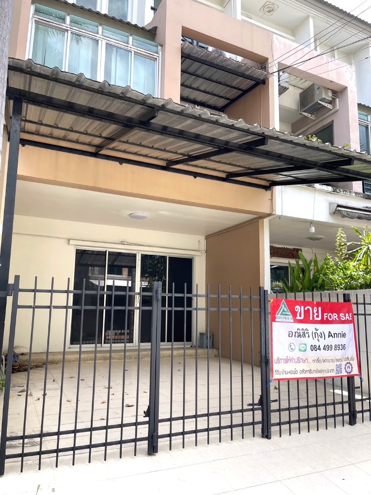 Townhouse for sale, Vista Park Ratchada-Ram Intra, very good condition, ready to move in, front width 5 meters for 2 car parking, 22.3 sq m., 200 sq m., shady with a garden, common area and large trees within the project :: Highlights :: A lot of usable space, spacious, well-built parking roof in front of the house, high, airy, good ventilation And there is a sunshade on the second floor balcony, making the interior of the house cool and comfortable, saving on air conditioning. The laundry area at the back is a strong and safe extension. The roof is high and airy, and the air circulates well :: Details :: - Size 22.3 sq.wa - Area 200 sq.m. - 3 bedrooms, 4 bathrooms - 3-storey townhouse - Facing East - Garden view, cool ventilation :: Furniture list :: Interior design by your own style, 4 air conditioners and 2 CCTV cameras inside the house :: Nearby places :: Pink Line Fashion Island The Promenade Makro Ramintra Tesco Lotus Sukhapiban 1 Chocolate Ville Bodindecha (Sing Singhaseni) School 2 Price 4,690,000 baht *Price negotiable* Inquire or make an appointment to view the house ^_^ Please contact: Annie Contact numberLine: Contact number - Welcome to give advice Buy-sell-invest land, condos, houses and all types of real estate
