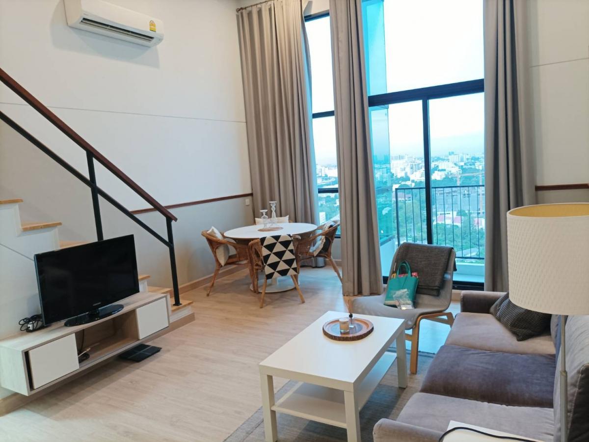 Knightsbridge Duplex Tiwanon Condo Knightsbridge Duplex Tiwanon, beautiful room, fully furnished, most livable in the project, now available for immediate reservation **This position is the largest room** in the same type, size 46 square meters (other roo