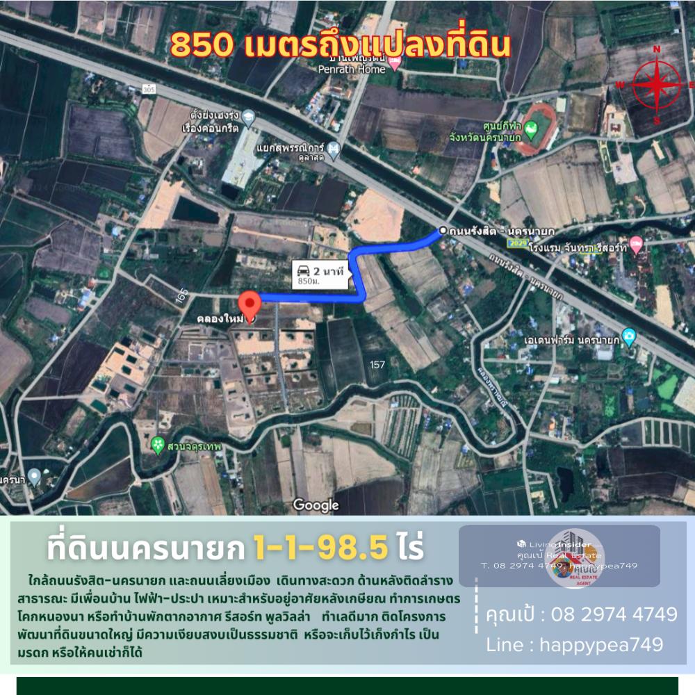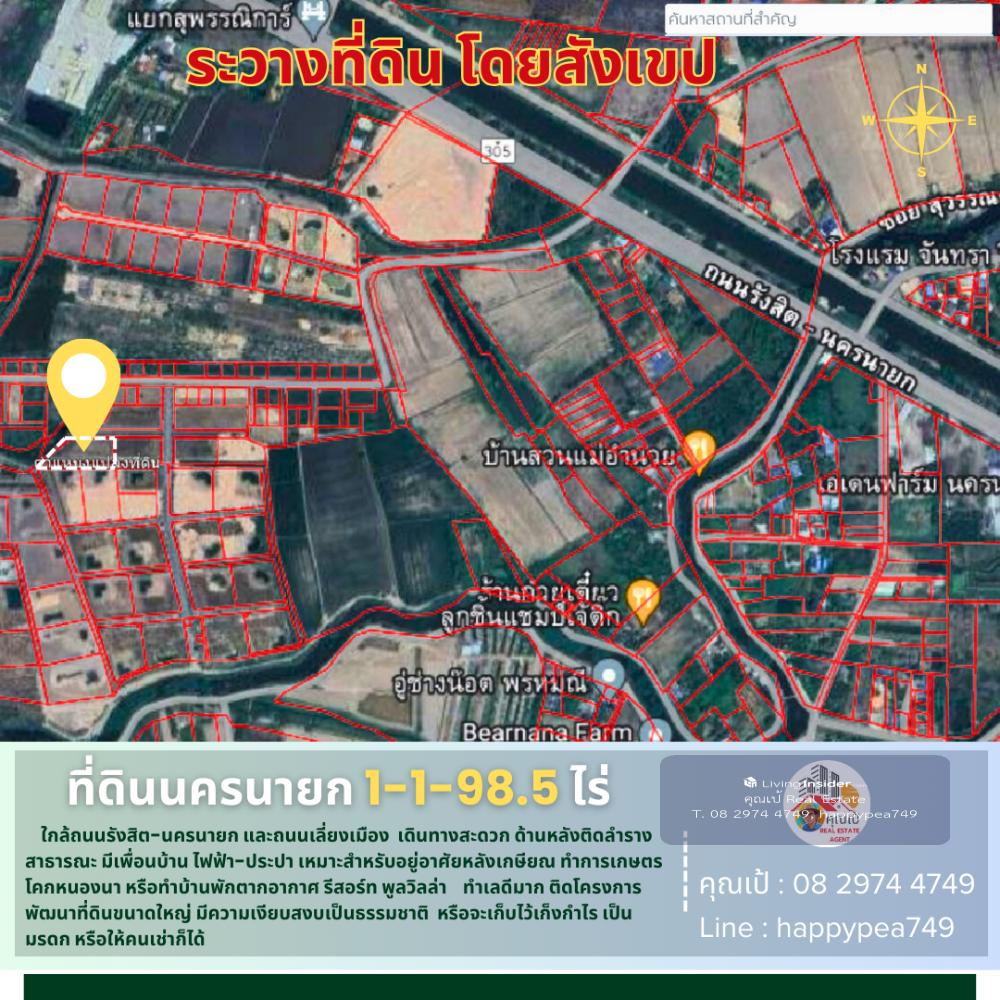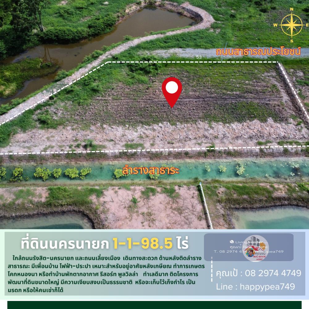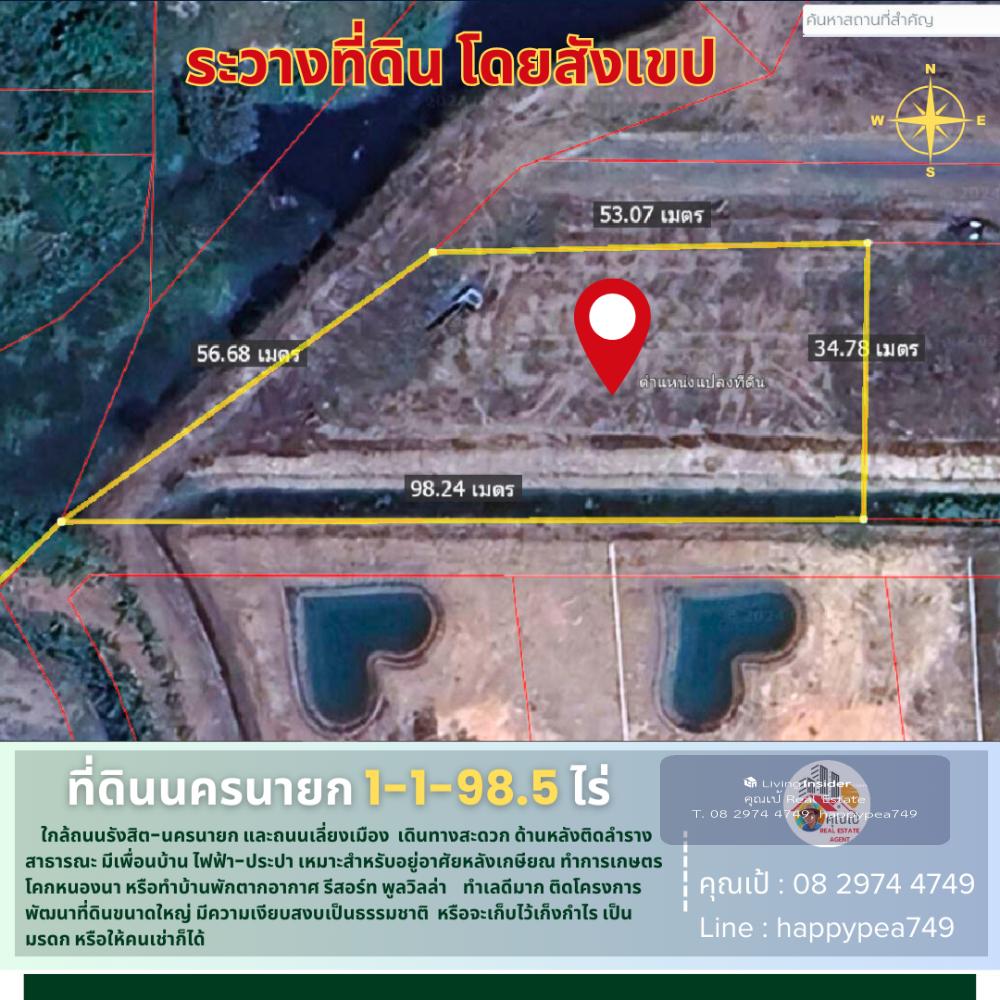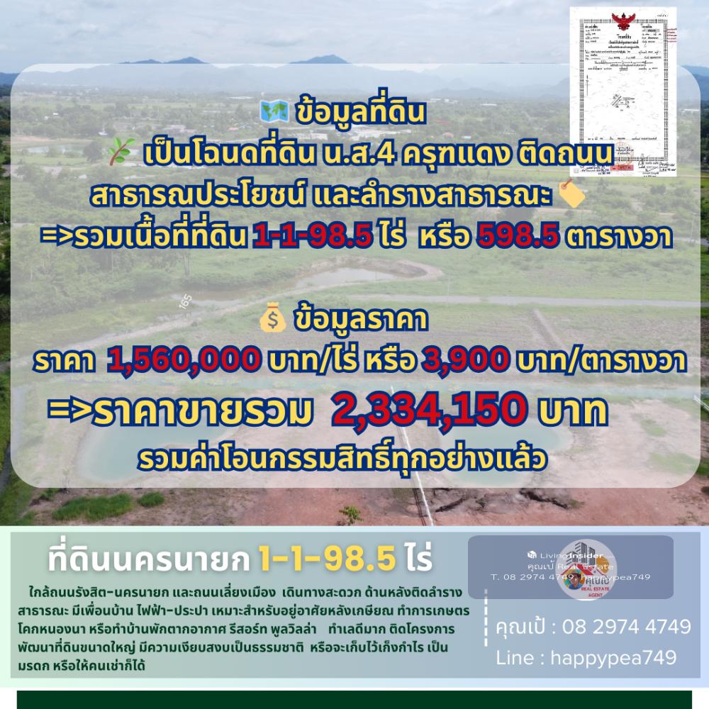 💰 This land in Nakhon Nayok is a vacant land with an area of 1-1-98.5 rai or 598.5 sq.wa. It is located near Suphannika Intersection, Rangsit-Nakhon Nayok Road (305) and the bypass road (By PASS) The landmark of the entrance to the land plot is that it is opposite the Nakhon Nayok Provincial Stadium and the Chantra Resort Hotel. The entrance road is a public road, 12 meters wide, convenient, only 850 meters from Rangsit-Nakhon Nayok Road (305). The surrounding area is rice fields and agricultural gardens. The mountain view is very beautiful. It is quiet and natural. The atmosphere is good. It is near Khlong Phrommani. The land plot is a trapezoidal shape. The front is on a public road. The back is on a public canal. There is electricity and water in front of the plot. Suitable for building a house for retirement or investing in a vacation home, resort, pool villa to welcome tourists. And importantly, this plot is located in front of a large land development project. For investors, it is definitely worth buying for long-term speculation. 🚧 Location Phrommani Subdistrict, Mueang Nakhon Nayok District, Nakhon Nayok 26000 📍Pin navigation Land plot coordinates https://maps.app.goo.gl/ncv61a9QgVfPHJKW6 🧶 Green urban plan, rural and agricultural type 📍 Nearby important places 850 meters from Rangsit-Nakhon Nayok Road (305) 1.3 kilometers from Suphannika Intersection (Bypass Road) 4 kilometers from Nong Chachacha Noodle Shop, 10 kilometers from Chulachomklao Royal Military Academy/Khao Cha-ngok Golf Course 18 kilometers from the Armed Forces Academies Preparatory School, 6 kilometers from Nakhon Nayok Hospital 5 kilometers from Royal Hill Golf Resort & Spa, 10 kilometers from Makro Nakhon Nayok 26 kilometers from Sarika Waterfall, 26 kilometers from Khun Dan Prakan Chon Dam 35 kilometers from Khao Yai National Park Checkpoint, Nen Hom Checkpoint, 72 kilometers from Future Park Rangsit 🗺️ Land information 🌿 It is a title deed for land, NS.4, Red Garuda, located on a public road and a public canal. 🏷️ =>Total land area 1-1-98.5 rai or 598.5 square wa 💰 Price information Selling price 1,560,000 baht/rai or 3,900 baht/square wa =>Total selling price 2,334,150 baht, including all transfer fees 🌟 A great investment opportunity that you shouldnt miss! 🔑 📢For more information, feel free to chat, we are friendly and easy to talk to. Contact 🤵Khun Pae Real Estate Agent Accepting deposits, buying and selling beautiful land for investment, business and residence. 📞Tel. Contact number 📟 Line : happypea749 Click https://line.me/ti/p/WbmkWfUuvu 🎉See other land plots https://www.livinginsider.com/public_profile/1/eDbjy.html #Land by the canal #Land by the road #Nakhon Nayok land #Land by the mountain #Land by the water #Sariga #Investment #Land #Pool villa #Vacation home #Agriculture #Farm #Capitalist #Investor #Khok Nong Na #Land Plot #Millionaire #Land Millionaire #Khun Pae #Investor #Suphannika #Land for sale #Nakhon Nayok #Good location land #Business investment #Real estate #Business #Empty land #Highway #Investment opportunity #retirement home #retirement land #land for investment #Phrommani land #Khun Dan Prakan Chon Dam #Khao Yai #Nongs Noodles #Chulachomklao Royal Military Academy #Army Preparatory School