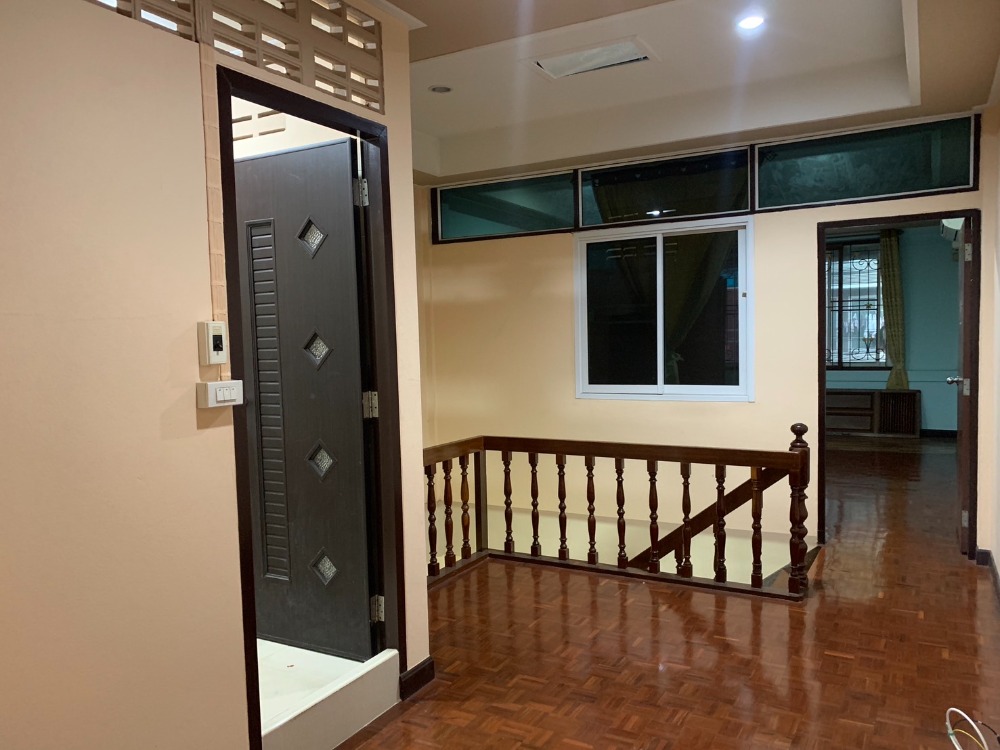 2-storey townhouse, 23 sq.w., 3 bedrooms, 2 bathrooms, kitchen, living room, can park 1 car, not deep into the alley Upstairs, 2 bedrooms, 1 bathroom, 2 air conditioners Downstairs, 1 bedroom, 1 bathroom, 1 air conditioner, kitchen, living room **Nearby places Mrt Phra Ram 9;Mrt Phra Ram 9 437 meters away, 7 min walk Mrt Huai Khwang (Exit 1);Mrt Huai Khwang (Exit 1) 479 meters away, 7 min walk Mrt Huai Khwang Rofomo Sathani Huai Khwang 479 meters away, 7 min walk Mrt Huai Khwang (Exit 4);Mrt Huai Khwang (Exit 4) 502 meters away, 7 min walk Mrt Huai Khwang (Exit 3);Mrt Huai Khwang (Exit 3) 528 meters away, 7 min walk Swissotel Bangkok Ratchada; Swissotel Bangkok Ratchada is 641 meters away, 9 min walk . Rongraem Loe Khongkho is 641 meters away, 9 min walk . Visual Stop is 764 meters away, 10 min walk . Near Esplanade Ratchada, The Street Ratchada, or Central Rama 9, Big C Ratchada **Please allow us to not yet accept Chinese people.** **Accept small and few pets, indoor pets **Rental price 25,000/month, 2 months security deposit, 1 month advance rent, 1 year contract. Contact Tel/Line Contact number Ag, no cattle.