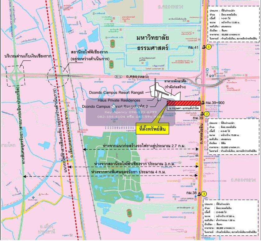 Property highlights • Large plot of land in a potential location, on Phahon Yothin Road (Highway 1), km 39+900, on Phahon Yothin Road (outbound) • Convenient transportation, near the future Red Line MRT station (Rangsit Station) • Nearby places: Big C Nawanakorn, Tesco Lotus Nawanakorn, Thammasat Hospital Rangsit, Thammasat University Rangsit, Bangkok University, Nawanakorn Hospital, Valaya Alongkorn Rajabhat University, Provincial Electricity Authority Property details • Vacant land (1 plot), area 78-0-10 rai-ngan-wa or 31,210 sq.w., Land size 96x1,172 m., Pink city plan • The interior of the plot has been filled (ground level with the road), and is surrounded by a fence The shape of the land is rectangular Beautiful land for sale, good environment Convenient location, can enter and exit in many ways Negotiable price Want map coordinates or additional information Chat/call to talk.