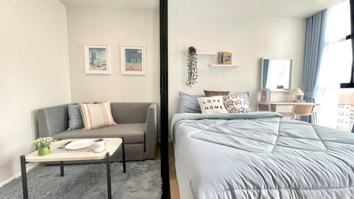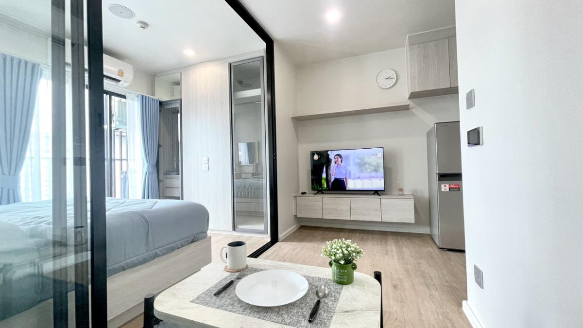 Condo for rent, Ivory Ratchada 32, new room, fully furnished 🔥 1 bedroom, separate room 8th floor room, room number 46/194, room size 24 sq m. 12,000/month Minimum 1 year lease, 2 months deposit, 1 month in advance Fully furnished, electric appliances, just drag your bags in 🚎Free shuttle to MRT Lat Phrao💯 Furniture •5-foot bed •Headboard •Built-in wardrobe •Sofa bed •Coffee table •Mirror with table + chair for work •Kitchen counter+hood+electric stove Electrical appliances •Android Tv 43" •Washing machine 10 kg •Water heater •2-door refrigerator •2 air conditioners 📱If interested, contact Contact number May, Contact number Bung Line @warm_house or click on the link https://page.line.me/warm_house