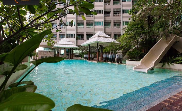 Urgent sale, sold with tenant, The Four Wings Residence, on Srinakarin Road, near Krungthep Kreetha intersection, size 98 sq m., 22nd floor, 2 bedrooms, 3 bathrooms, swimming pool view, well decorated