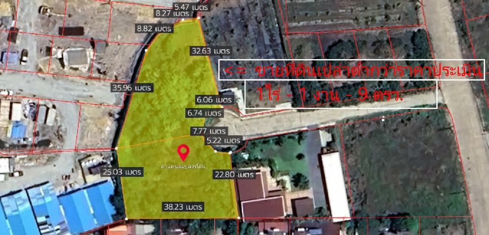 Land for sale 1 rai 109 sq m. Nakhon Chai Si, Nakhon Pathom Tha Tamnak, Nakhon Chai Si District, Nakhon Pathom Land size 1 rai 109 sq m. Land width 38 meters Depth 32 meters Good location, near Krisda