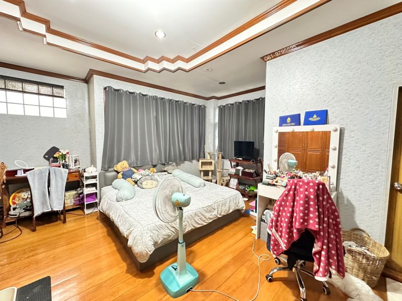 Land for sale with buildings near Bang Phra Beach, Sriracha Price 15,000,000 baht (All transfer fees, half each) Details Land area 243 square wah Front facing 6-meter road Land surrounded by public roads on 3 sides There are 2 parts of buildings - Residential 5 bedrooms, all with en-suite bathrooms 1st and 2nd floor halls are spacious - 2 shophouses for business The house gate is an automatic door Good location, near Sukhumvit Road, about 150 meters from Bang Phra Beach, a community area, near shops, convenience stores, 7-11 T : A12
