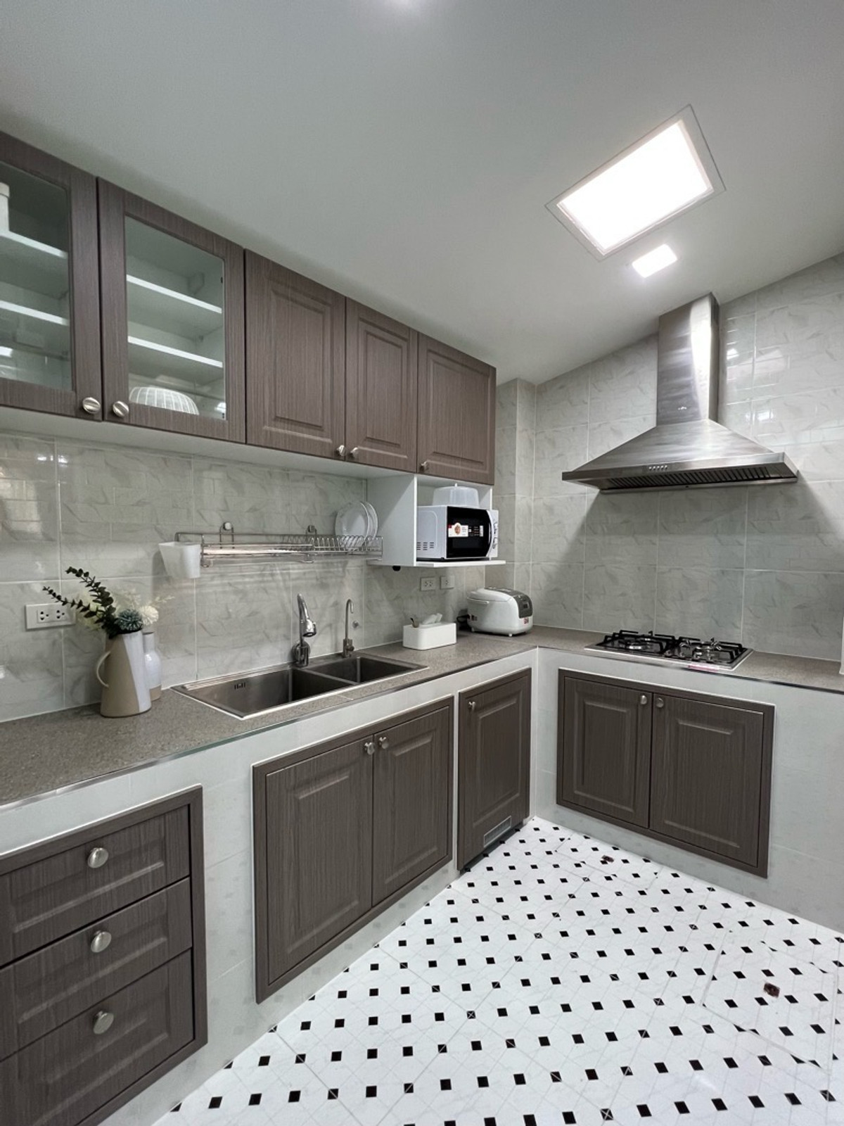 Project: Corner house, front garden, additional decoration, ready to move in Golden Town Phetkasem-Liap Khlong Thawi Watthana, on the main road along Khlong Thawi Watthana Corner house, front garden, fully decorated, ready to move in Lesina type house, usable area 120 sq.m., 4 bedrooms, 3 bathrooms, 2 parking spaces - Beautifully decorated, ready to move in - Kitchen extension (decorated with Starmark door panels in ALICE Smoky Ash style) - Carport roof extension + parking lot flooring - Full set of curtains - Electrical appliances ready to move in! (5 Diakin air conditioners, 2 water heaters, electric stove set + kitchen hood, water tank) Rental price 22,500 ฿ / month (12-month contract) By owner You can make an appointment to visit in advance at any time Call: Contact number (Off) LINE: Contact number