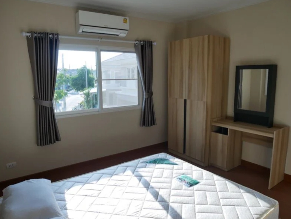 A house for rent near by 10 min to CentralPlaza Chiangmai Airport, No.9H159 清迈美丽的2层别墅出租 。每月租金 35,000 泰铢,。No.9H159 Rental monthly is 35,000 THB For 1 Year contact Condition 1 month in advance & 2 months deposit House spec : 4 Bedrooms, 3 bathrooms , 60 Sq.w, not far from Chiang Mai International Airport and Big C Hangdong. 4 卧室,3 浴室。面积 60 平方哇。 Furniture -Air conditioner 5 -Hot shower 2 -Bed 4 -Wardrobe 4 -Loungeset 1 -Dining table 1 -Television 1 -Refrigerator 1 -Microwave 1 -Washing machine 1 Contact us for more information : Aire 0 6 6 - 1 5 8 8 2 4 6, Ped 0 9 9 - 4 7 2 8 2 4 6, Ying 0 6 4 - 4 6 2 8 1 1 7 Line : https://lin.ee/xUfLbHe https://www.baandd-chiangmai.com