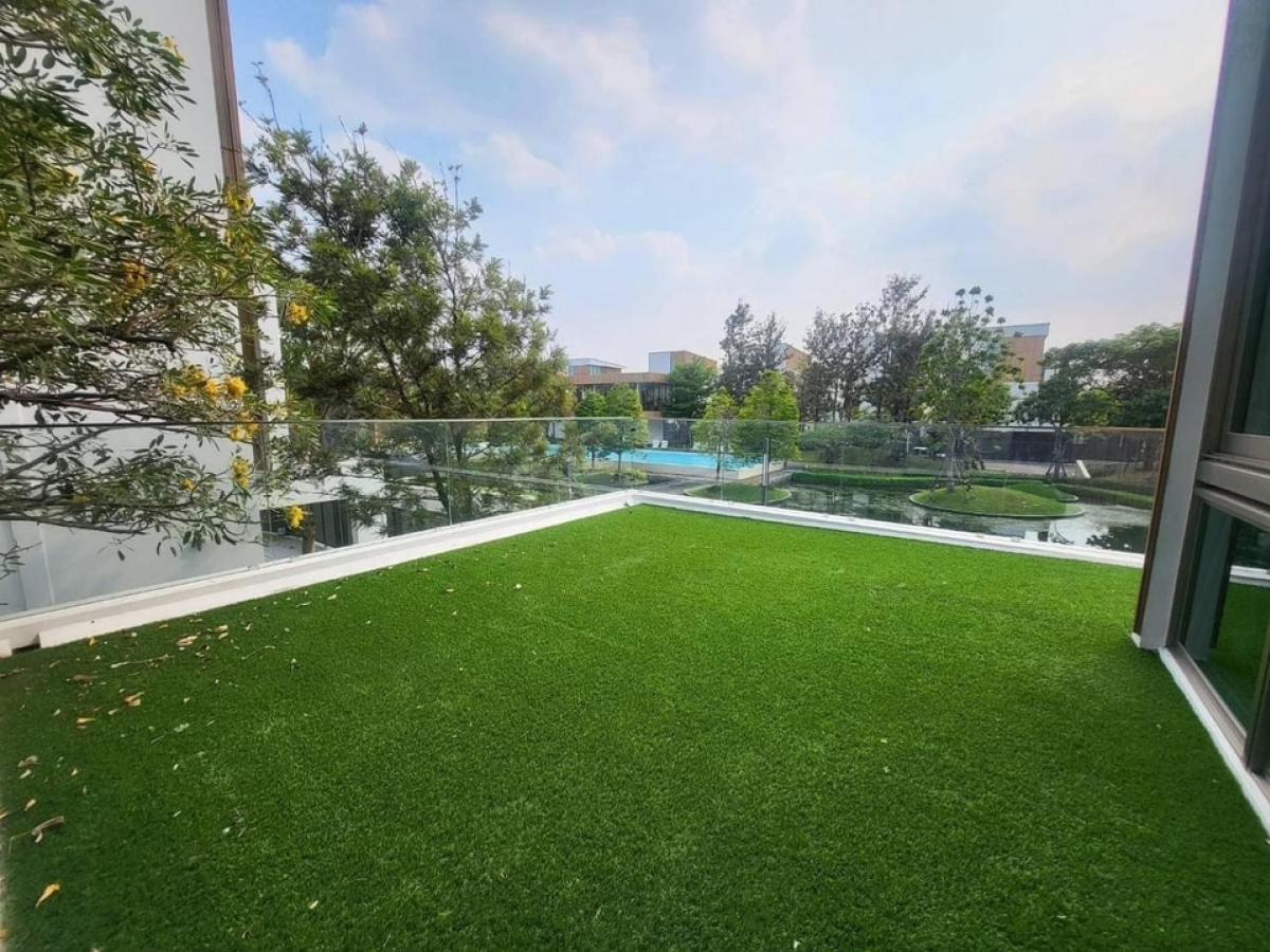 VIVE Rama 9, 3-storey detached house, front is a pond, back is a golf course view!! Near the Club House, swimming pool, project from Land & Houses, ready to move in ⬇️Price 210,000 baht per month