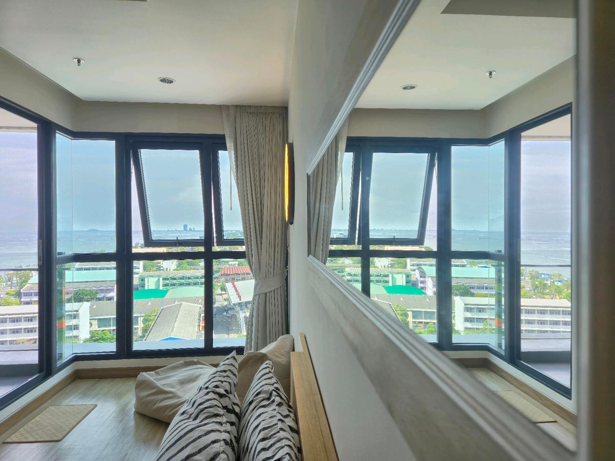 Condo for rent, Ladda Plus Sriracha Room size 34 square meters, sea view, Koh Loi view, separate kitchen, complete electrical appliances near Central Sriracha, near Robinson Sriracha near Somdech Phra Sriracha Hospital near Samitivej Sriracha Hospital near Phyathai Sriracha Hospital near the seaside public park, Koh Loi Interested, contact Gift Contact number
