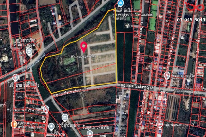 Contact: Khun Nueng Contact number office: Contact number location: Soi Prachasamran 3, Prachasamran Road, Nong Chok Subdistrict, Nong Chok District, Bangkok 10530 area: 33 rai 1 ngan 55 square wa review: land filled, selling together 2 title deeds, corner plot, on the road, Soi Prachasamran 3, 700 meters from the mouth of the alley nearby places: Big C Nong Chok, Lotus Nong Chok, Makro Nong Chok, Thai Watsadu Nong Chok, Nong Chok Market, Nong Chok New Market, Thai Thongsuk Market Nong Chok, Suera Ban Ko School, Wat Nong School