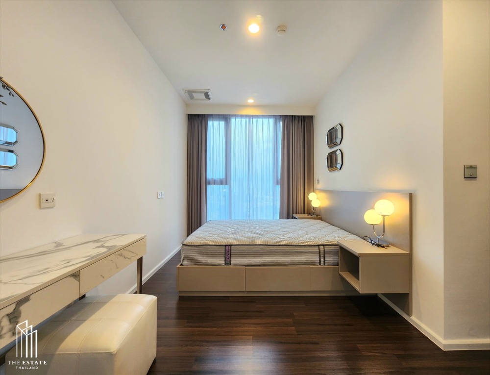For rent Whizdom Inspire Sukhumvit, high floor, corner room, fully furnished, with a view of Bangkok and the Chao Phraya River bend.