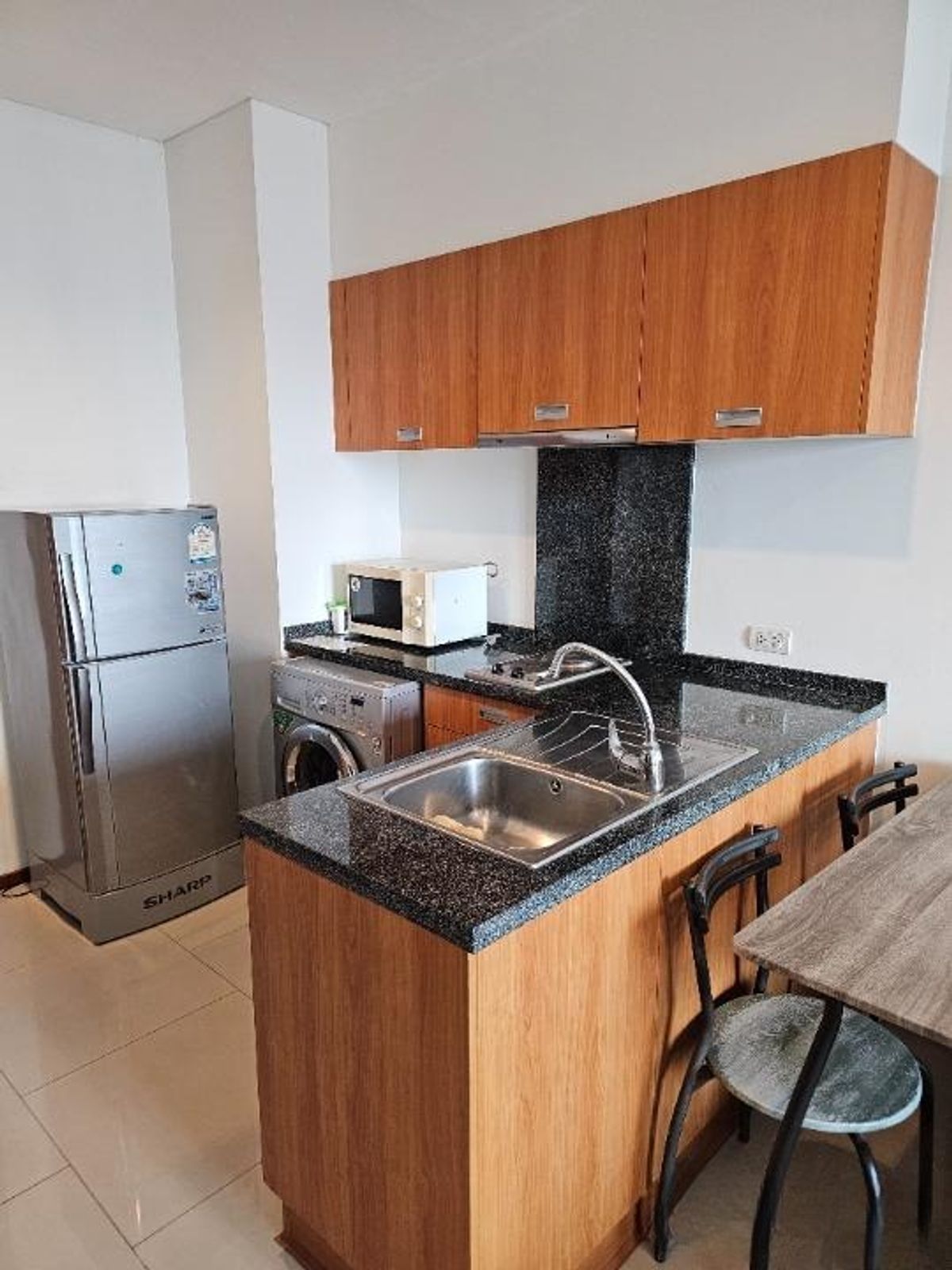 Rent Villa Sathorn 1 bedroom, 1 bathroom 42 sq.m., 7th floor Only 200 meters from BTS Krung Thonburi Room facilities: - 2 air conditioners - TV LED, 2 -door refrigerator, microwave, washing machine -