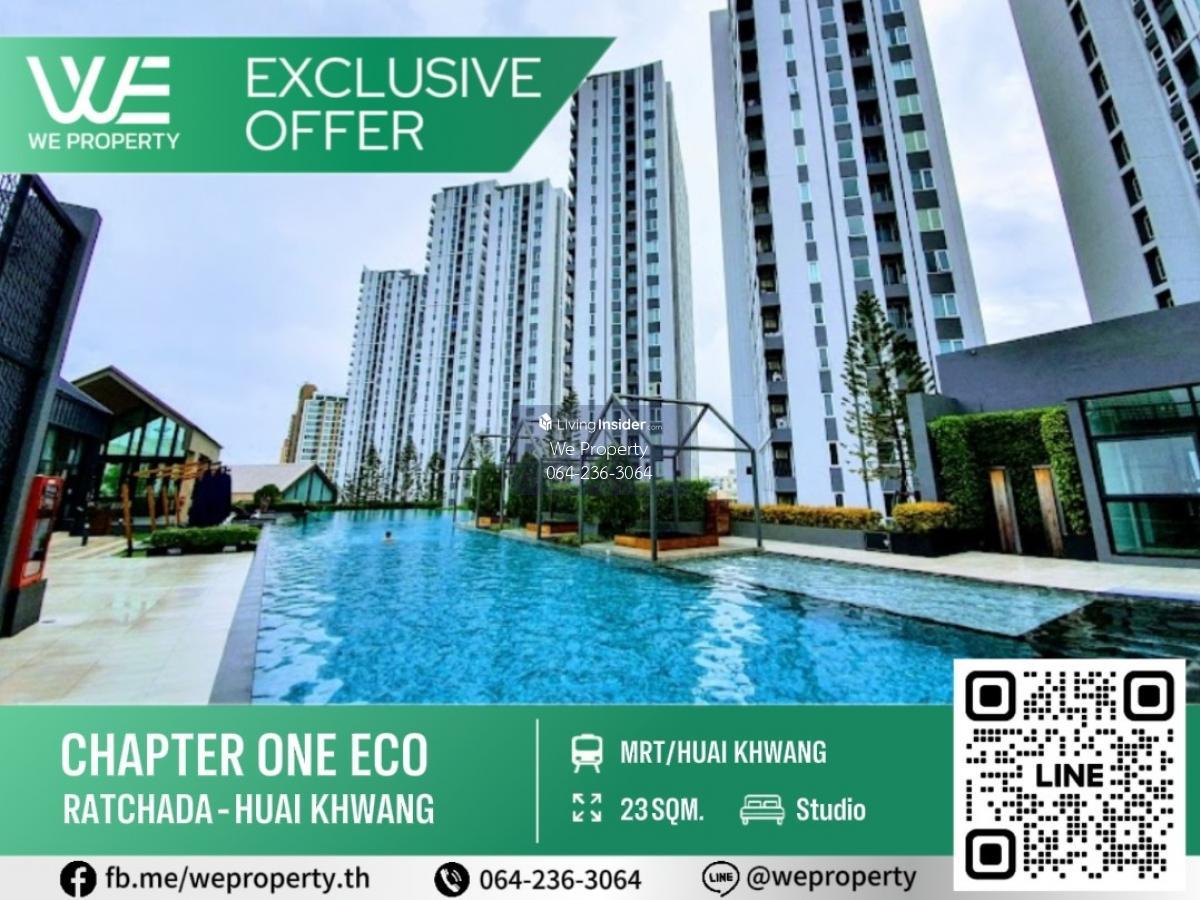 Property Code (C15-W0) Chapter One Eco Ratchada-Huai Khwang Studio 1 bathroom Size 23 sq.m. Fully furnished and equipped with electrical appliances Selling for only 2,080,000 baht!! ✅ Many rooms to ch