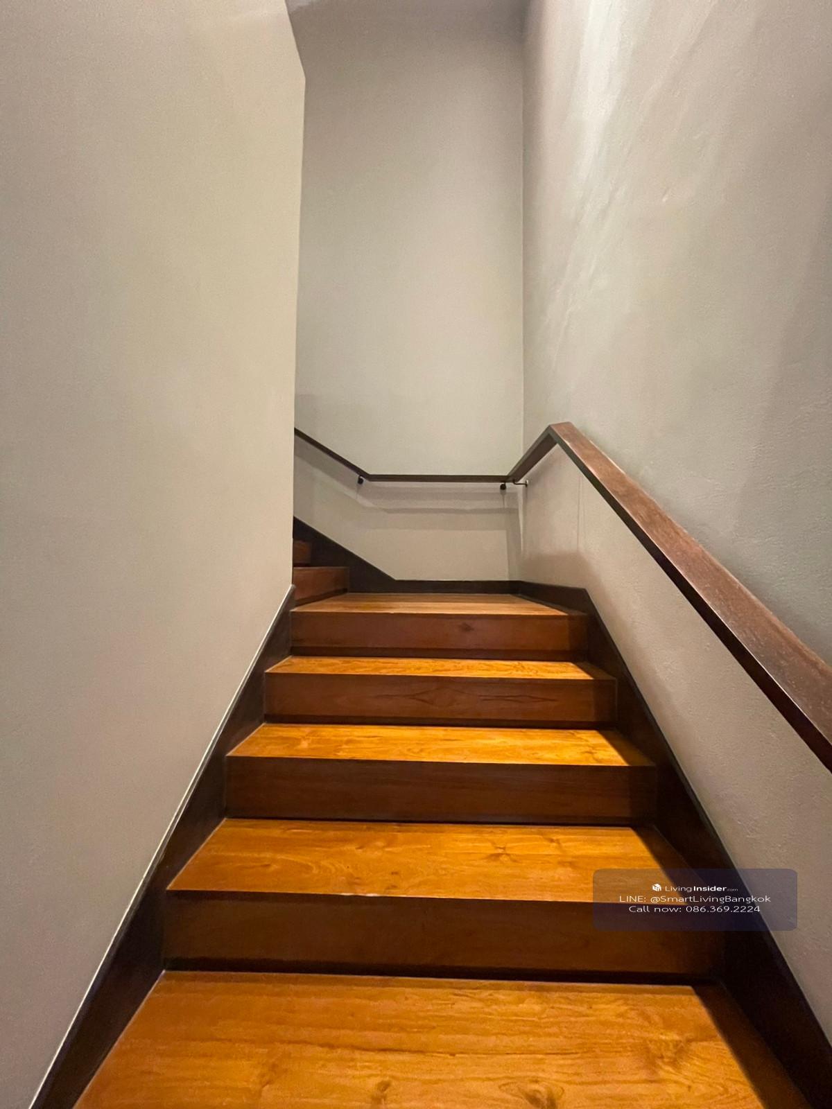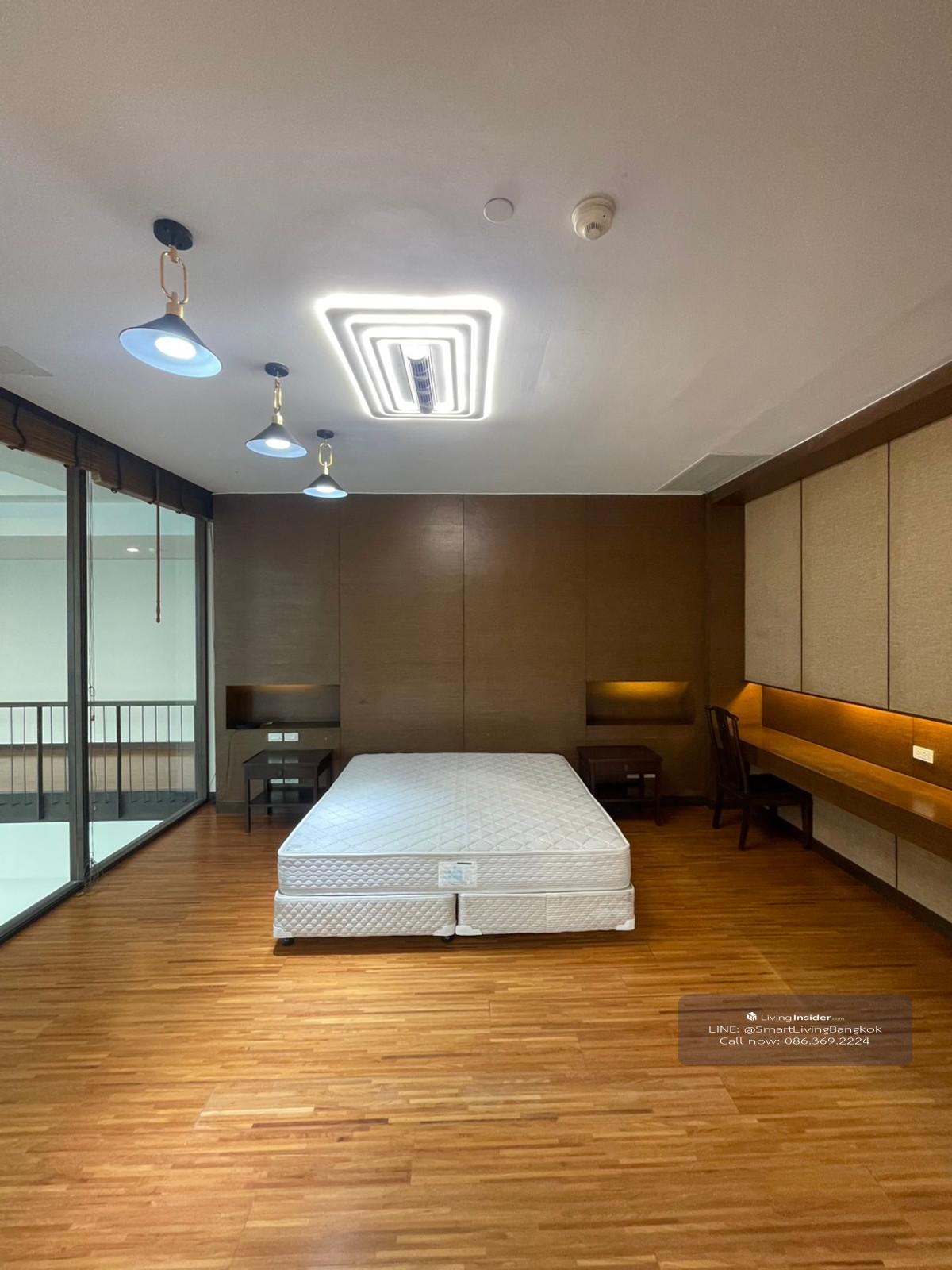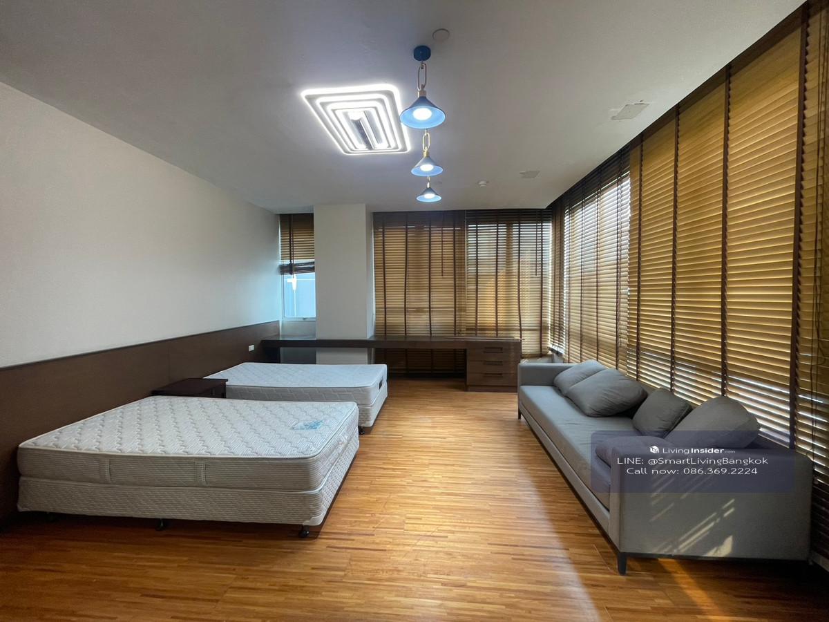 Duplex Penhouse for rent, 4 bedrooms, with 2 seating areas and closed kitchens, decorated in Woody style, complete furniture, large terrace, city view, near BTS Thonglor.