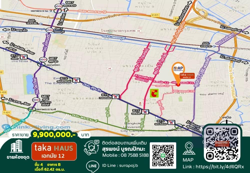 TH: New condo for sale, fully furnished with grade A furniture, in the heart of Ekkamai, special price - Japanese-style condo, ready to move in, beautifully decorated, corner room, private, surrounded by nature, safe and beautiful view, another quality project of Sansiri - The best potential location in the heart of Ekkamai, surrounded by many amenities for urban lifestyle, such as Gateway Ekamai, Samitivej Hospital Sukhumvit, Ekkamai International School, and many famous restaurants - Convenient transportation by both private car and BTS, only 1.8 km to BTS Ekkamai Value for money - For more information and an appointment to view the property Mr. Surapon (B) Tel. 087.588.5188 Free loan arrangement service, available from all banks, with special interest rates and a maximum credit line of 90-100% of the appraised value